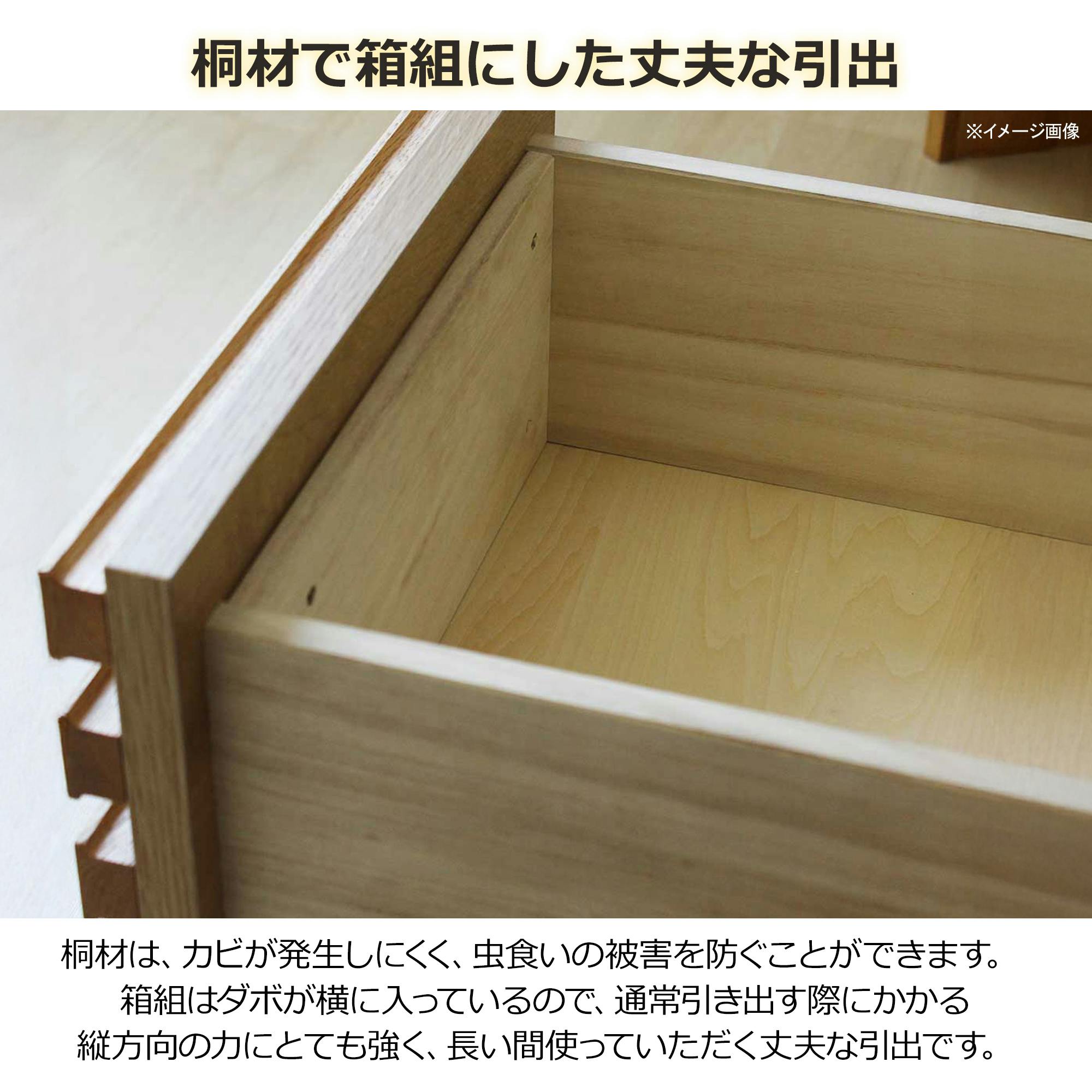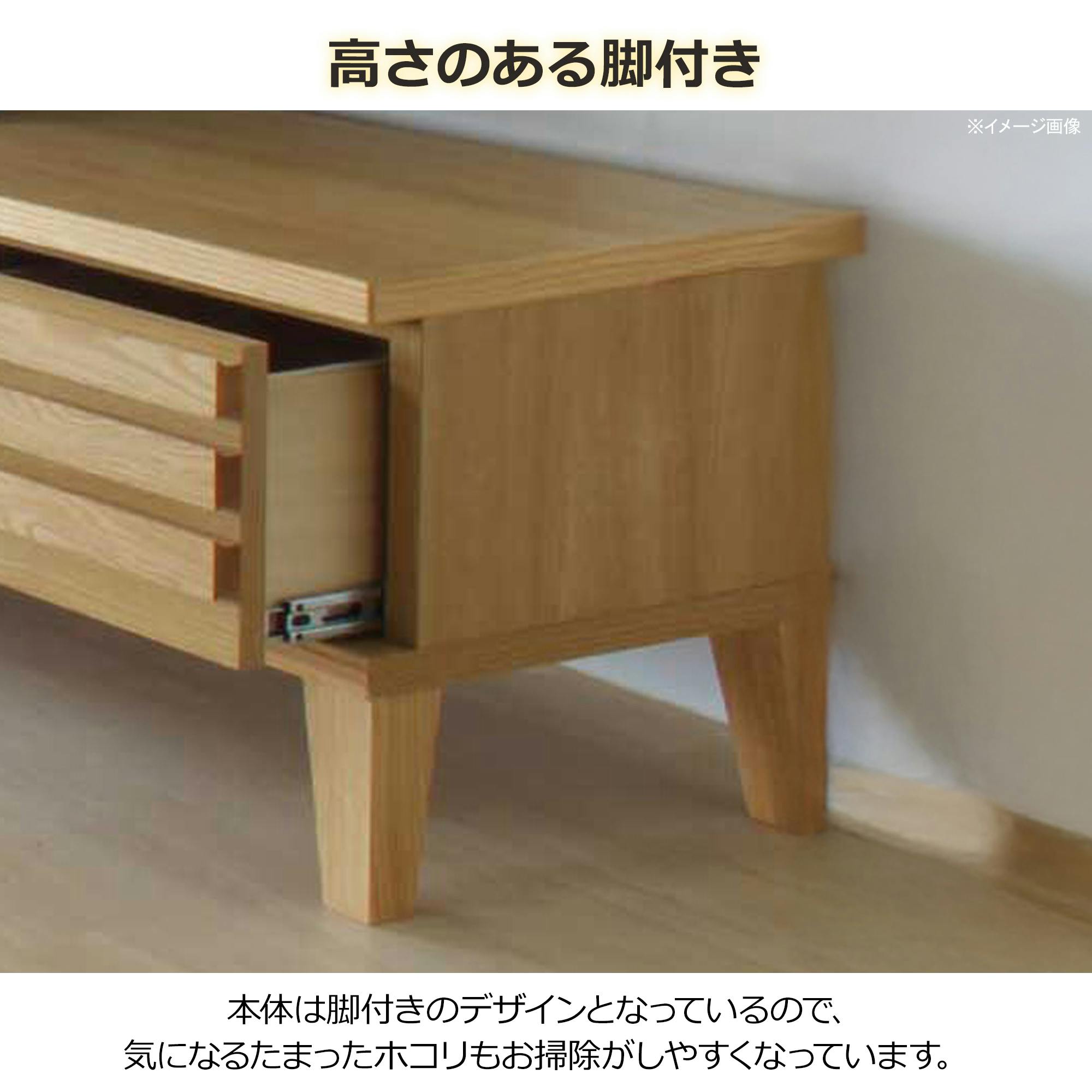 前板一面に格子のデザインが入っており、高級感があります。内部の引き出しはフルオープンレール仕様。脚付きで掃除がしやすい作りになっております。