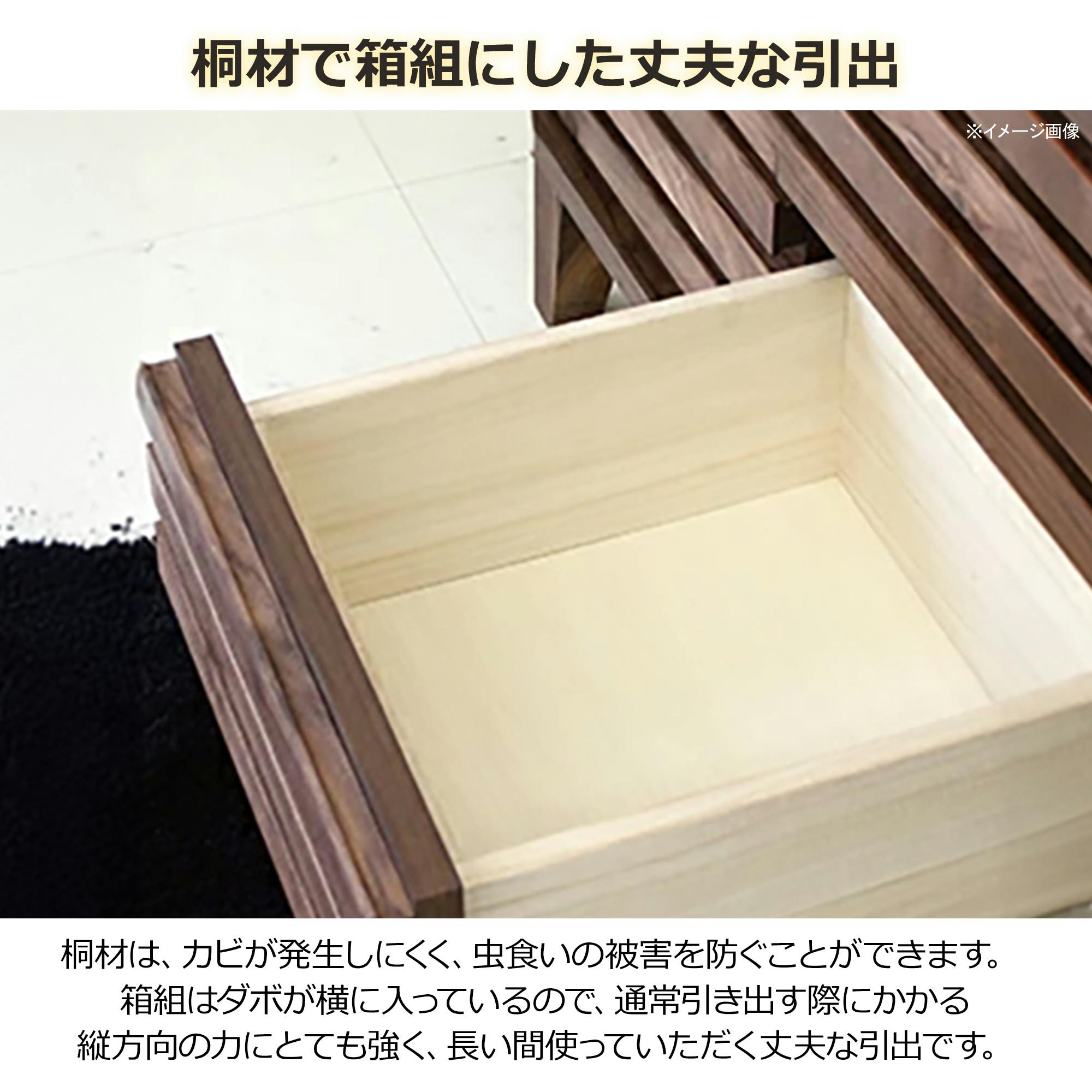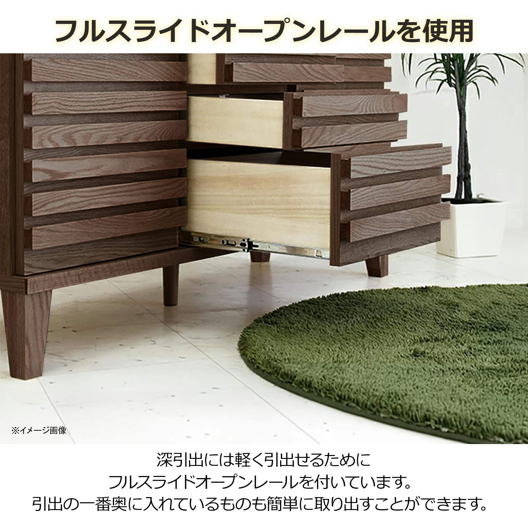 前板一面に格子のデザインが入っており、高級感があります。内部の引き出しはフルオープンレール仕様。脚付きで掃除がしやすい作りになっております。