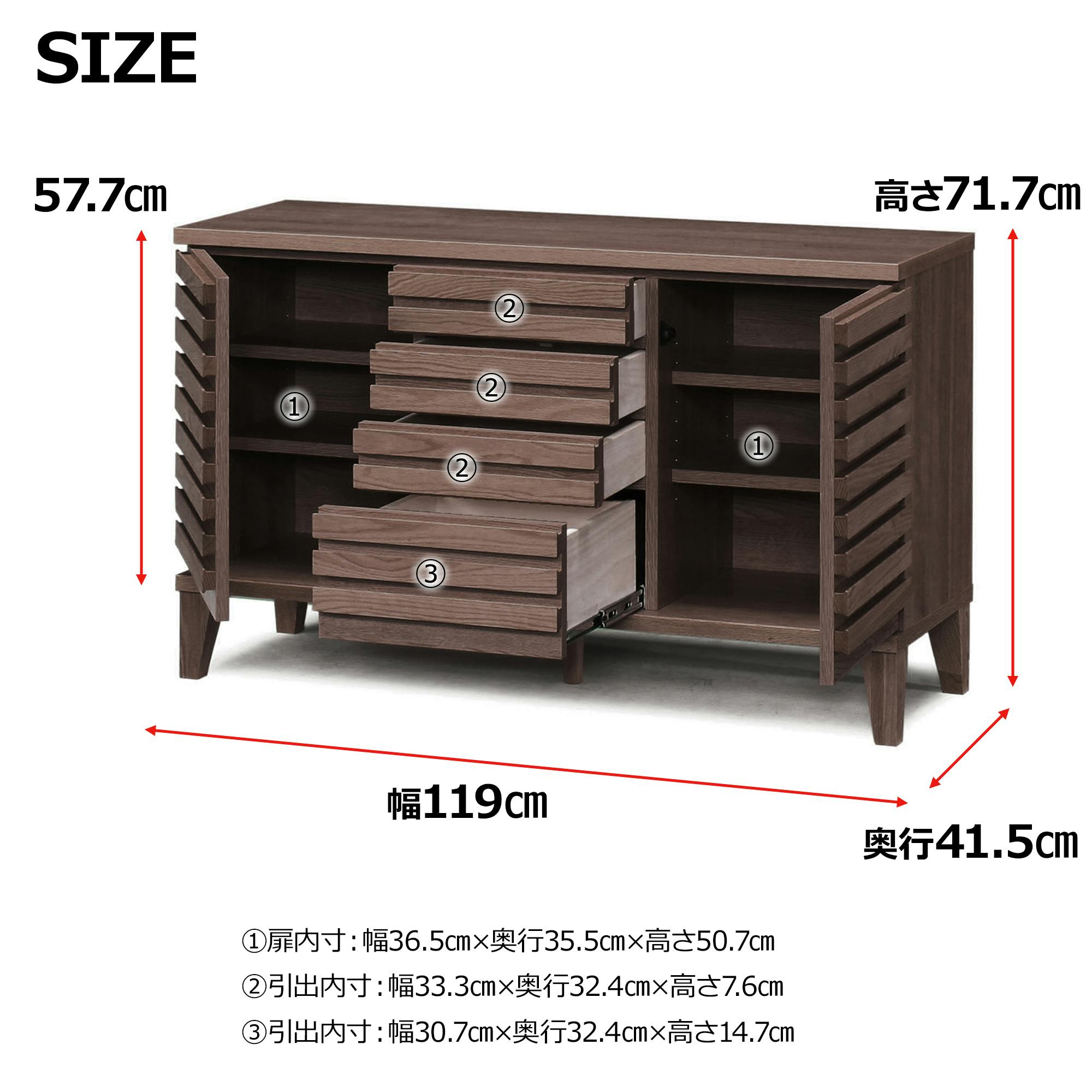 oka サイドボード セゾン 幅119cm ウォールナット キャビネット リビング収納 物入れ 446359【別送品】