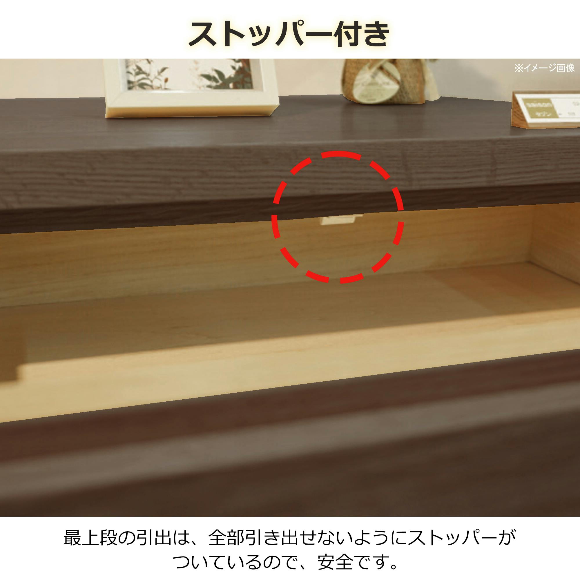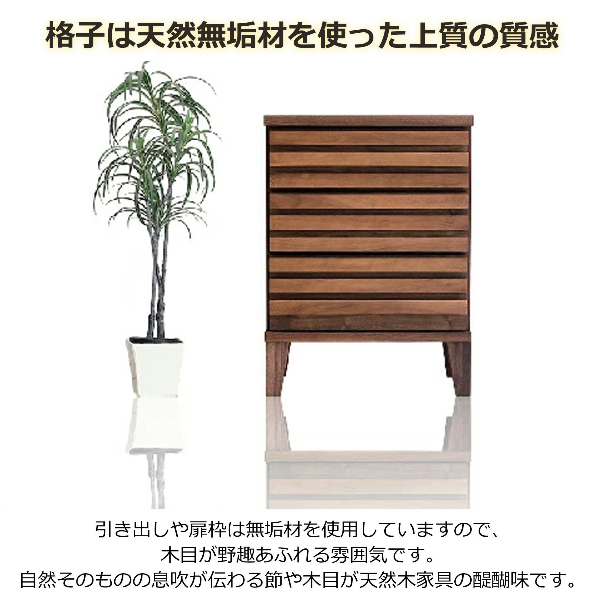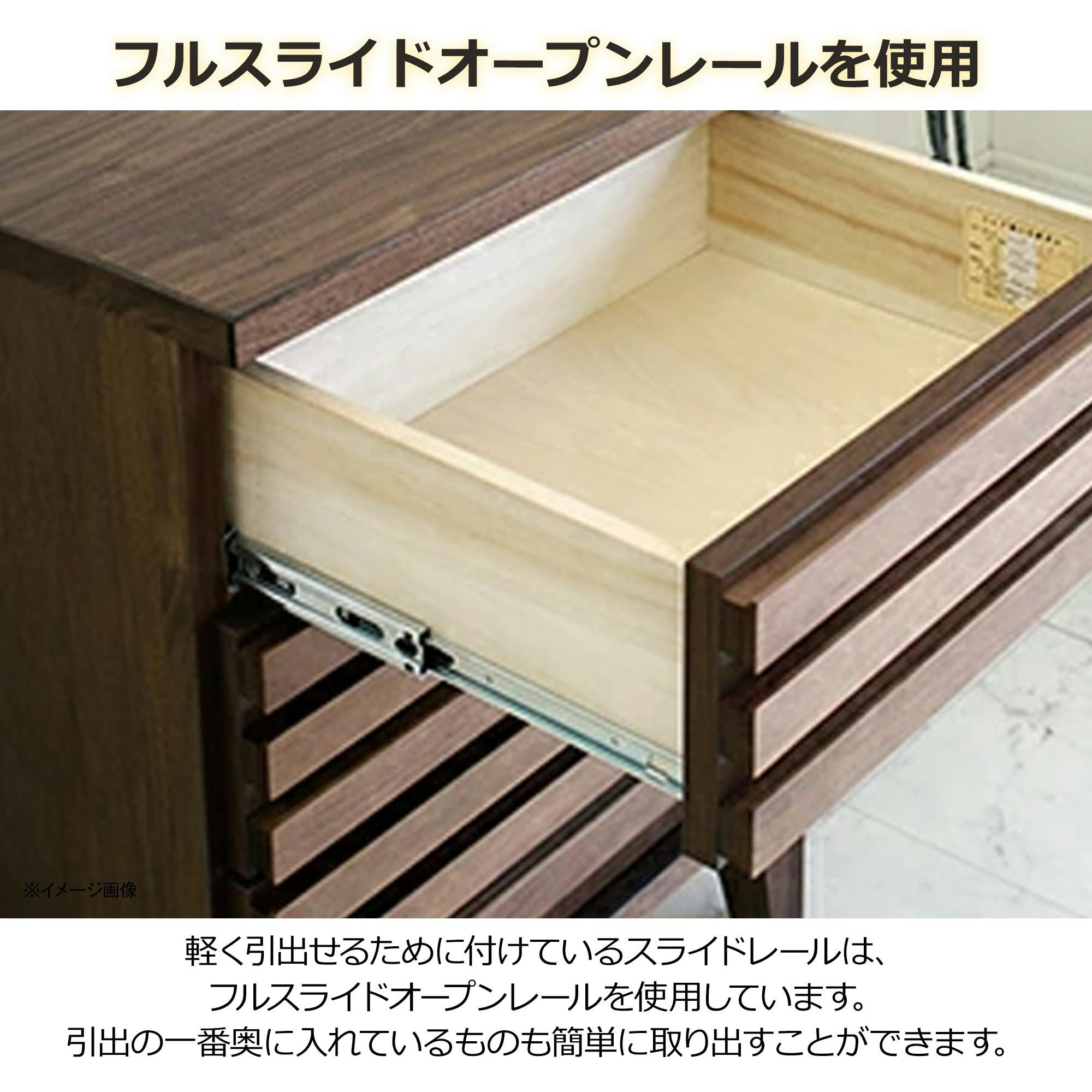 前板一面に格子のデザインが入っており、高級感があります。内部の引き出しはフルオープンレール仕様。脚付きで掃除がしやすい作りになっております。