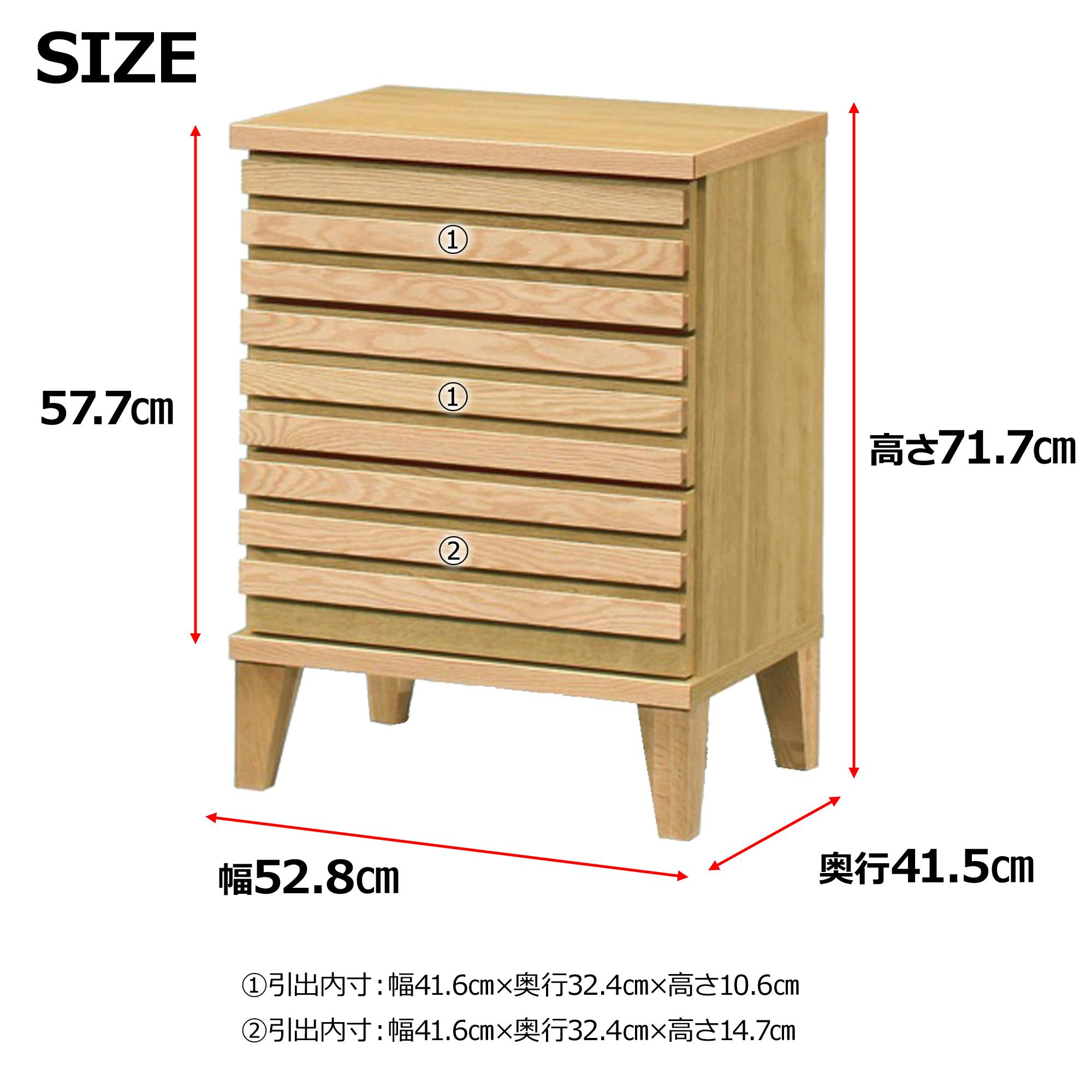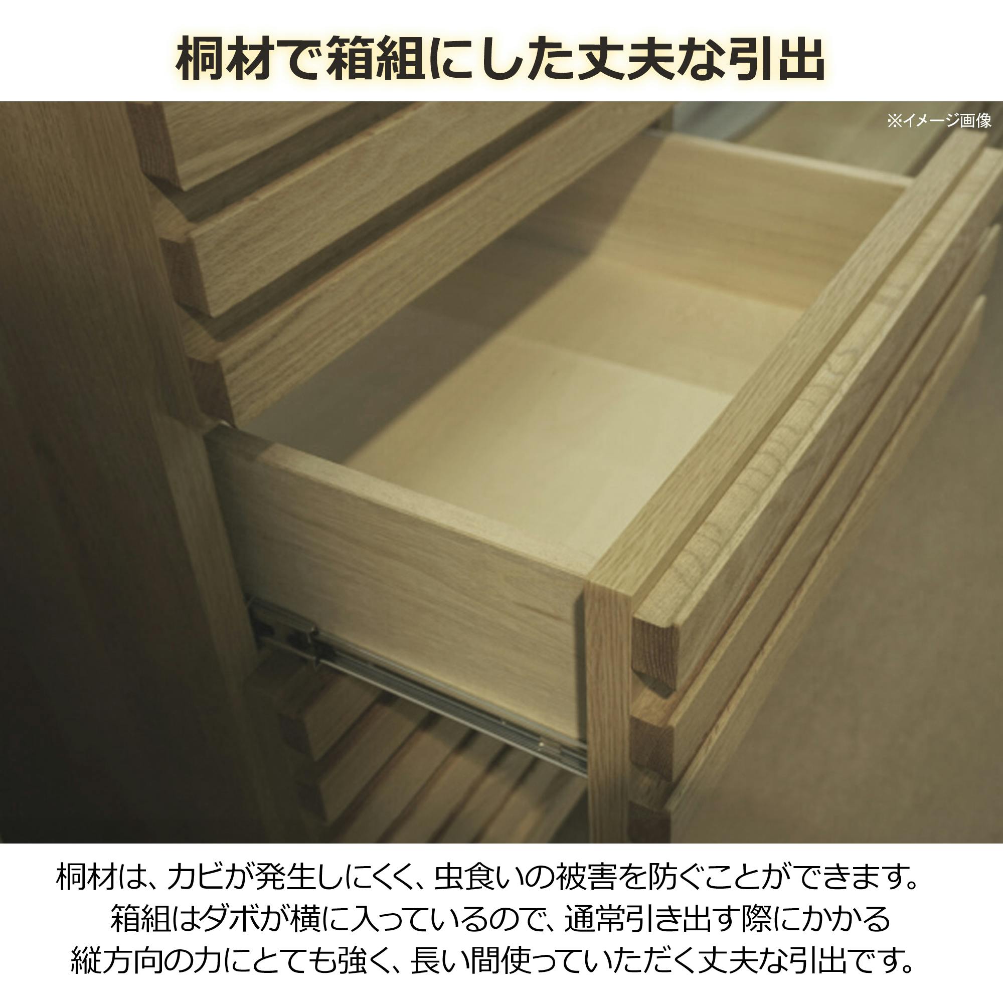 前板一面に格子のデザインが入っており、高級感があります。内部の引き出しはフルオープンレール仕様。脚付きで掃除がしやすい作りになっております。