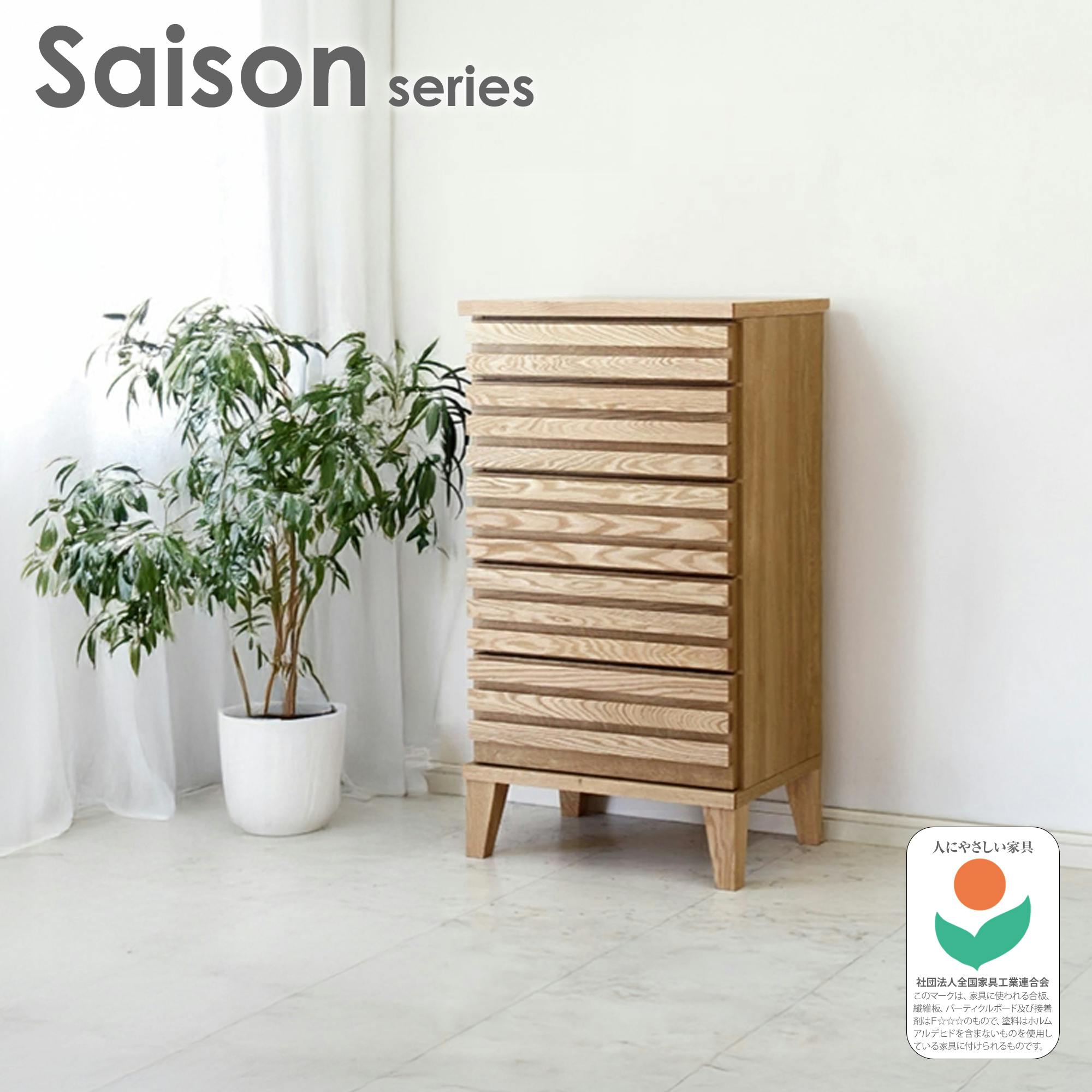 oka チェスト セゾン 幅53cm 5段 オーク タンス 収納家具 リビング収納 446364【別送品】