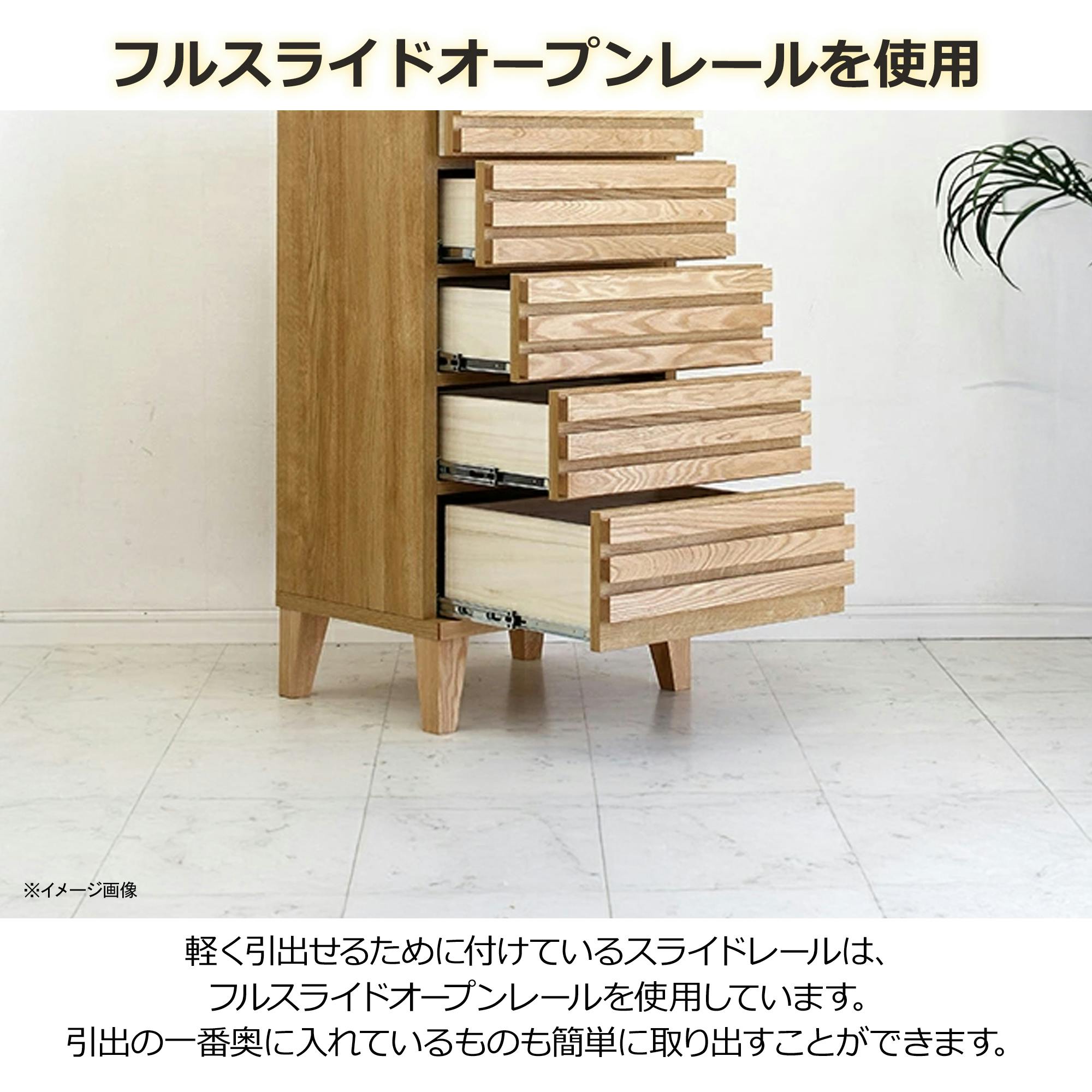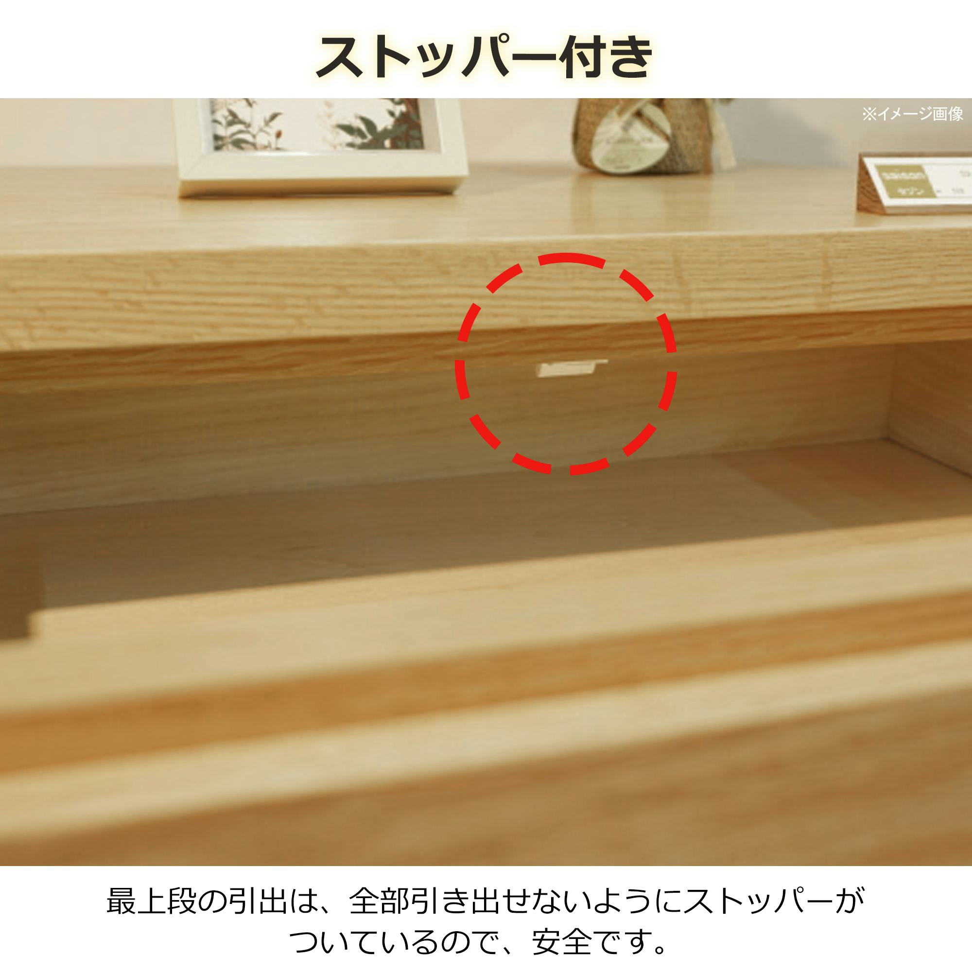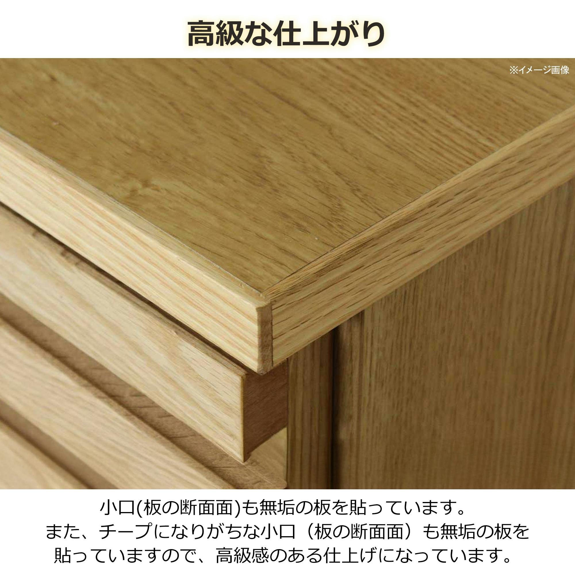 前板一面に格子のデザインが入っており、高級感があります。内部の引き出しはフルオープンレール仕様。脚付きで掃除がしやすい作りになっております。