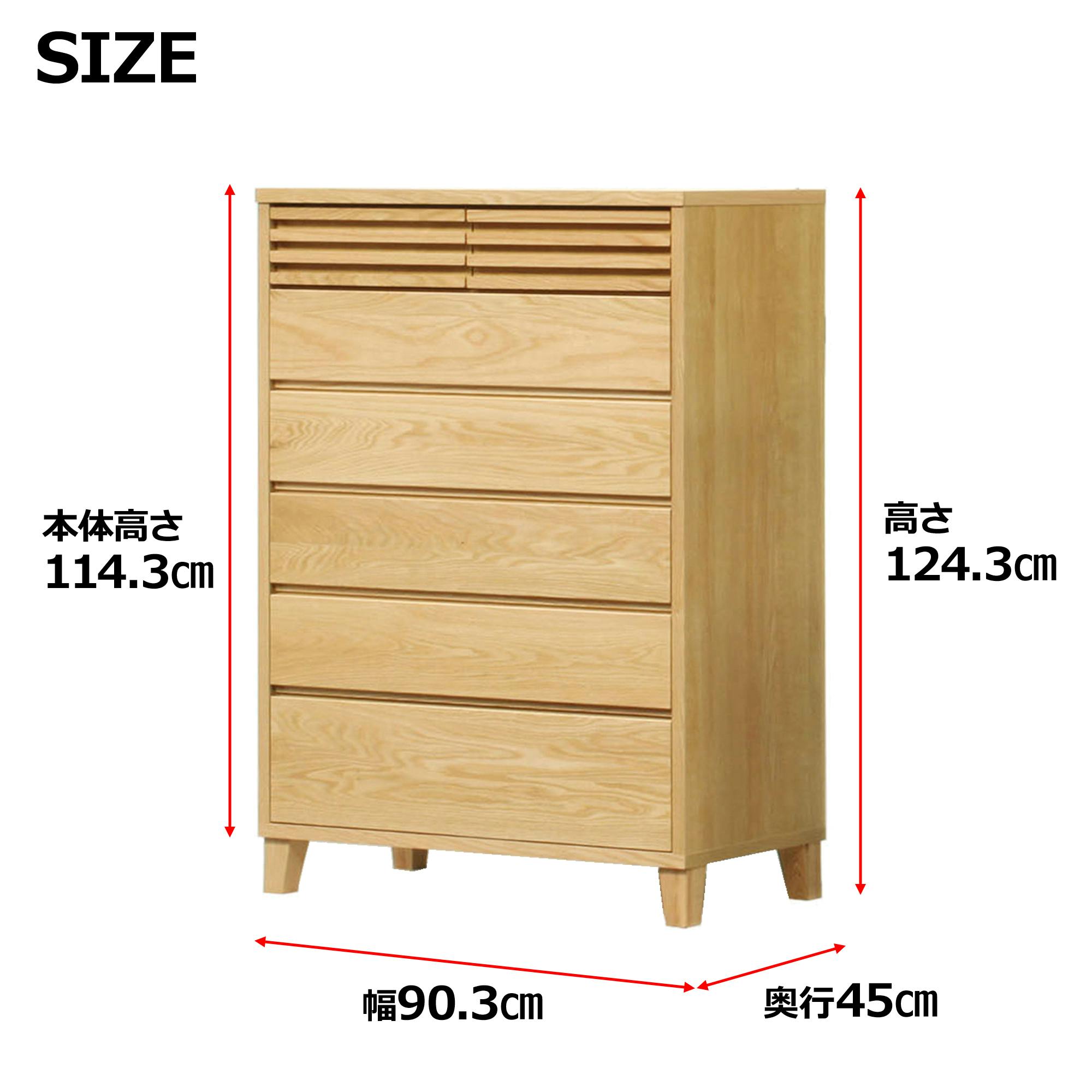 oka ハイチェスト バジル 幅90cm 6段 オーク タンス 収納家具 リビング収納 446366【別送品】