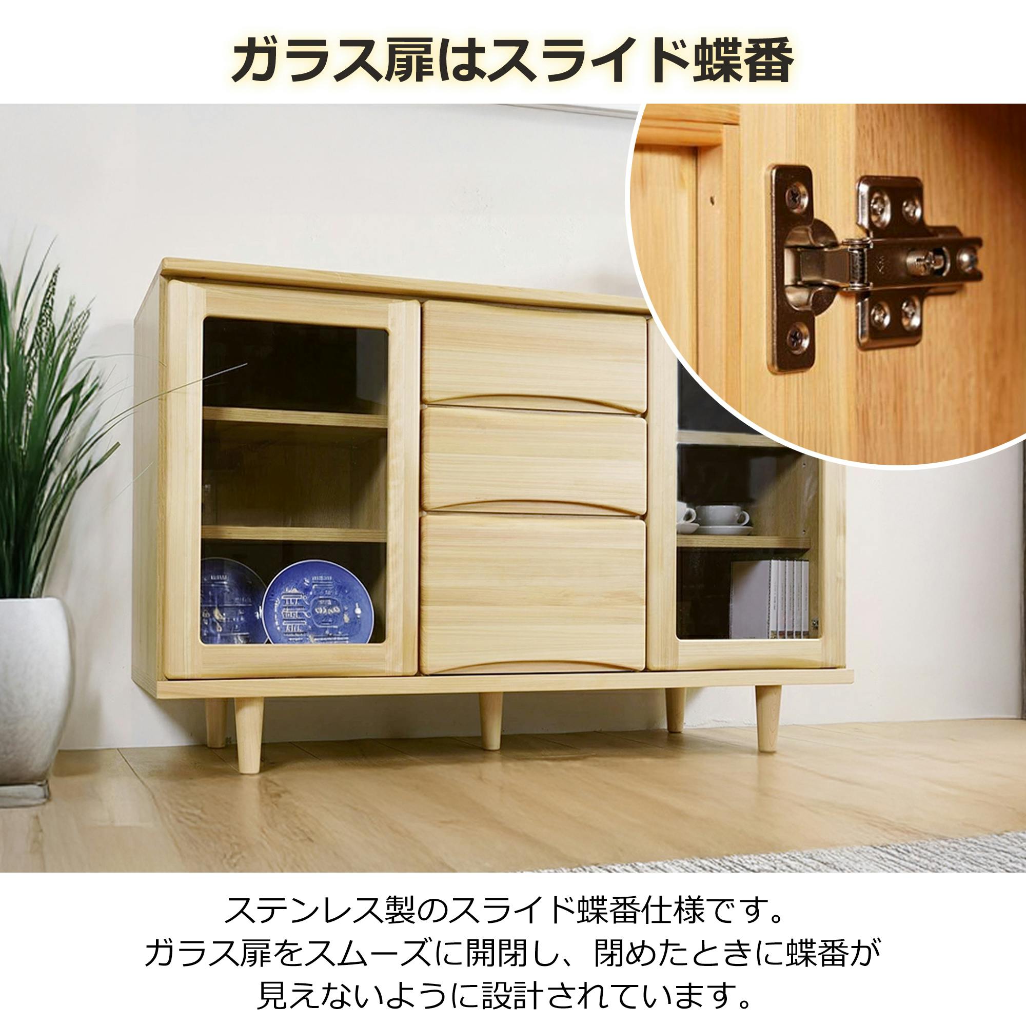 ヒノキ無垢材を天板と前板に採用。丸みを帯びた見た目と木の質感が相まって、柔らかい印象を与えてくれます。