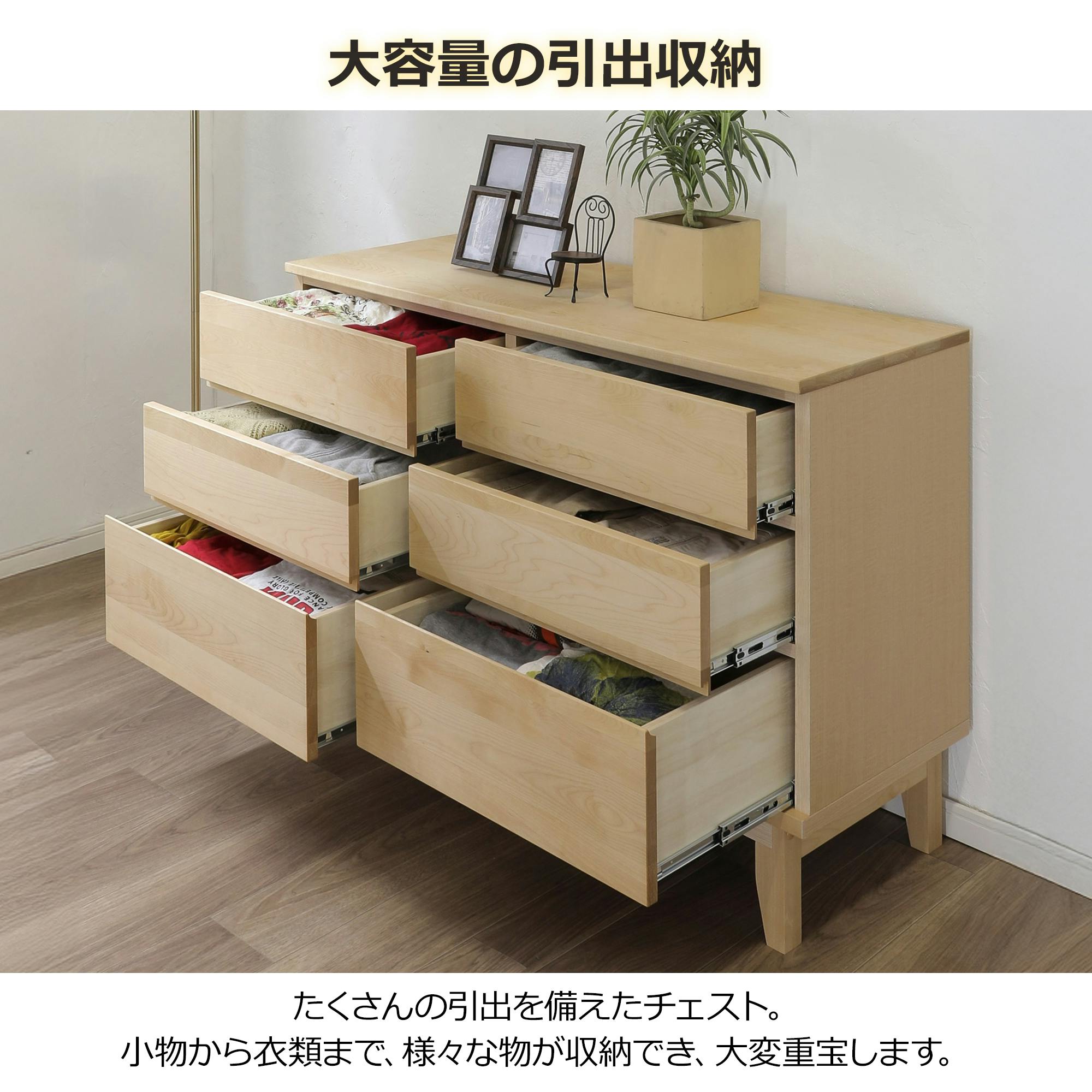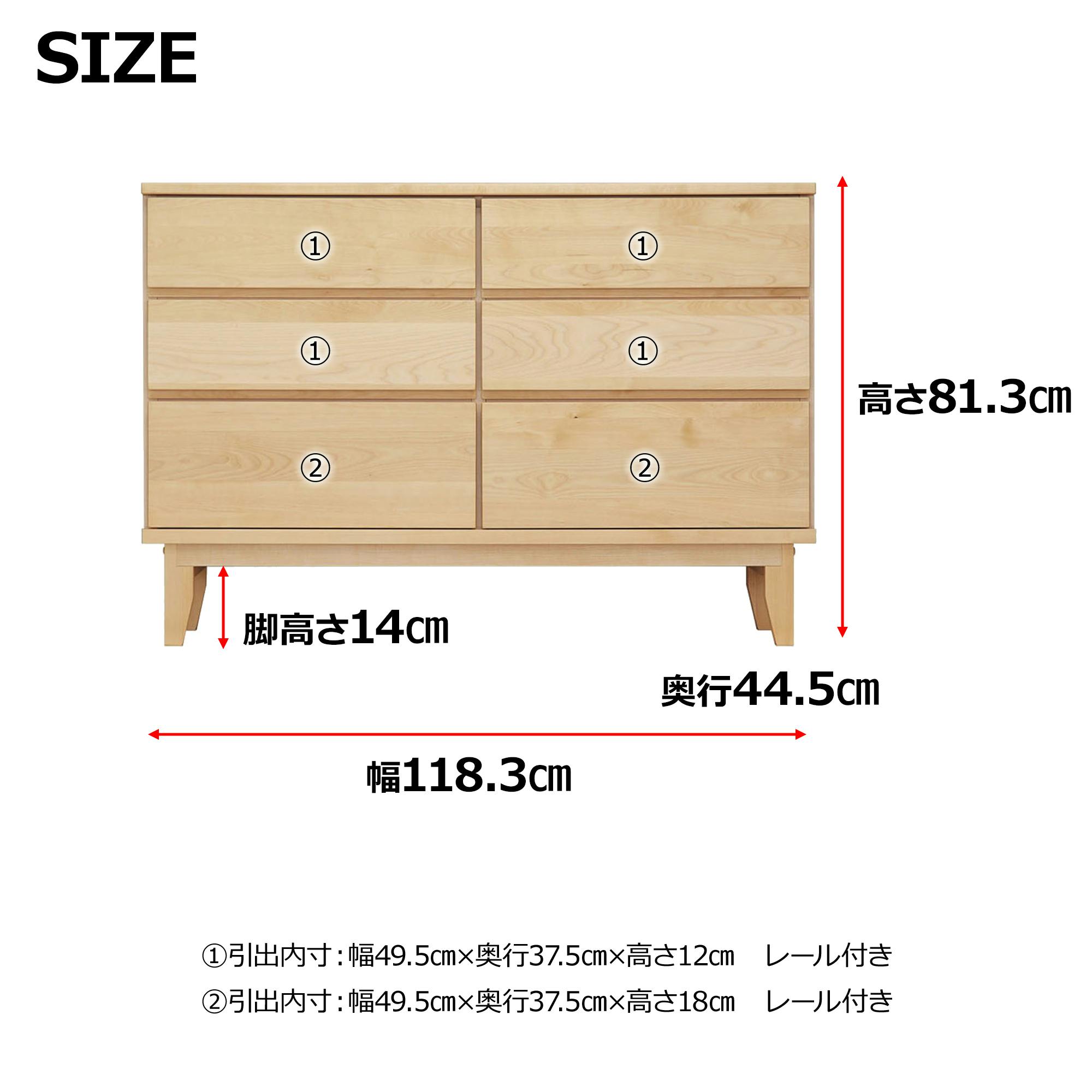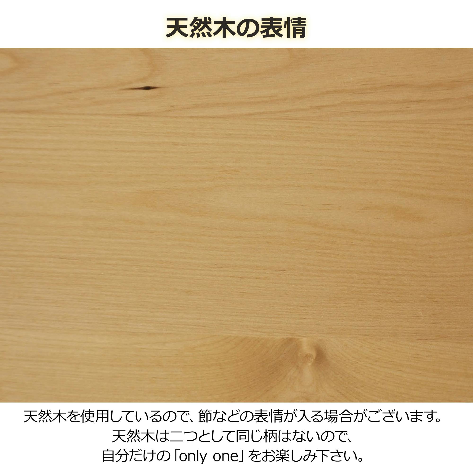 バーチ無垢材を天板と前板に使用し、木の温かみがありながらも高級感あふれる仕上がりとなっております。黄色みが薄く、白系に近いために明るい印象のナチュラルなお部屋づくりに最適です。