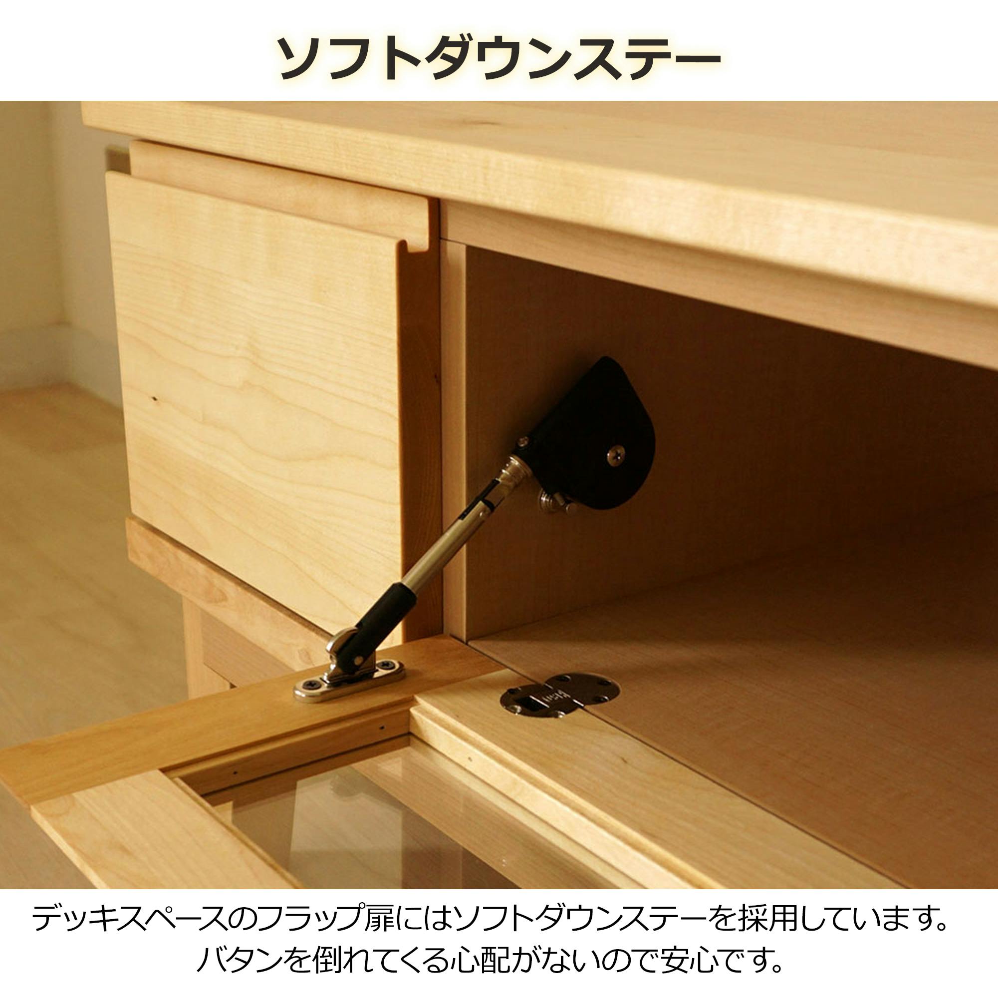 バーチ無垢材を天板と前板に使用し、木の温かみがありながらも高級感あふれる仕上がりとなっております。黄色みが薄く、白系に近いために明るい印象のナチュラルなお部屋づくりに最適です。