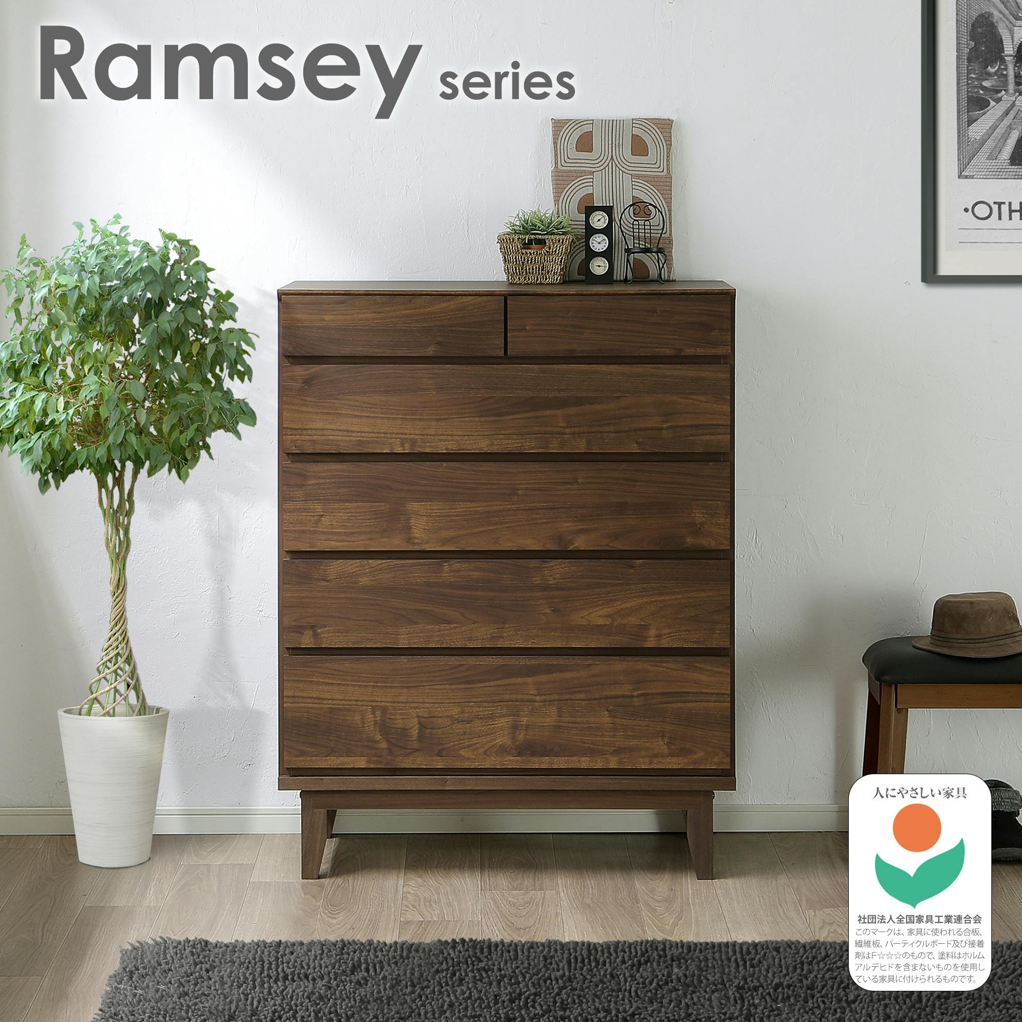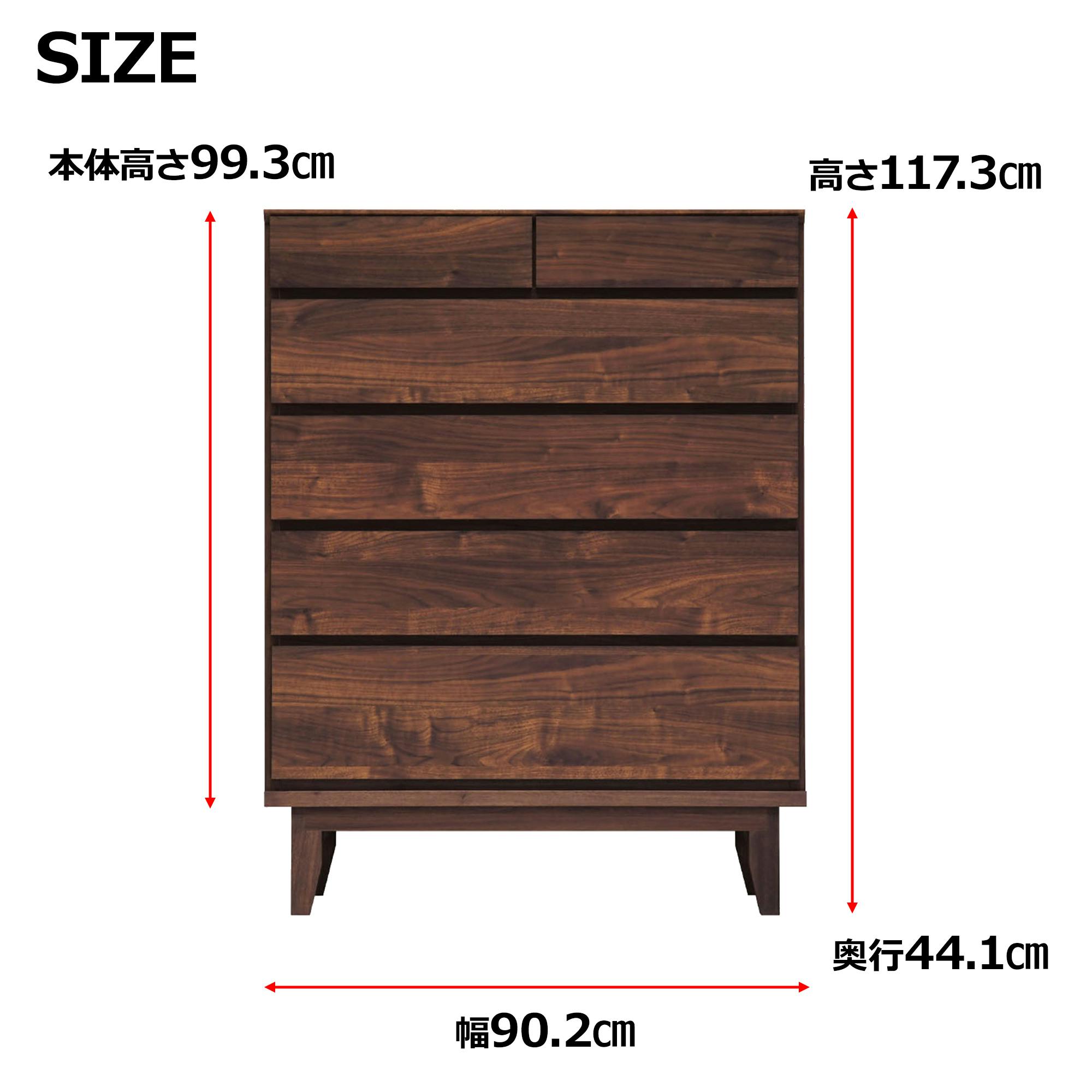 oka ハイチェスト ラムジー 幅90cm 5段 ウォールナット タンス 収納家具 リビング収納 446422【別送品】