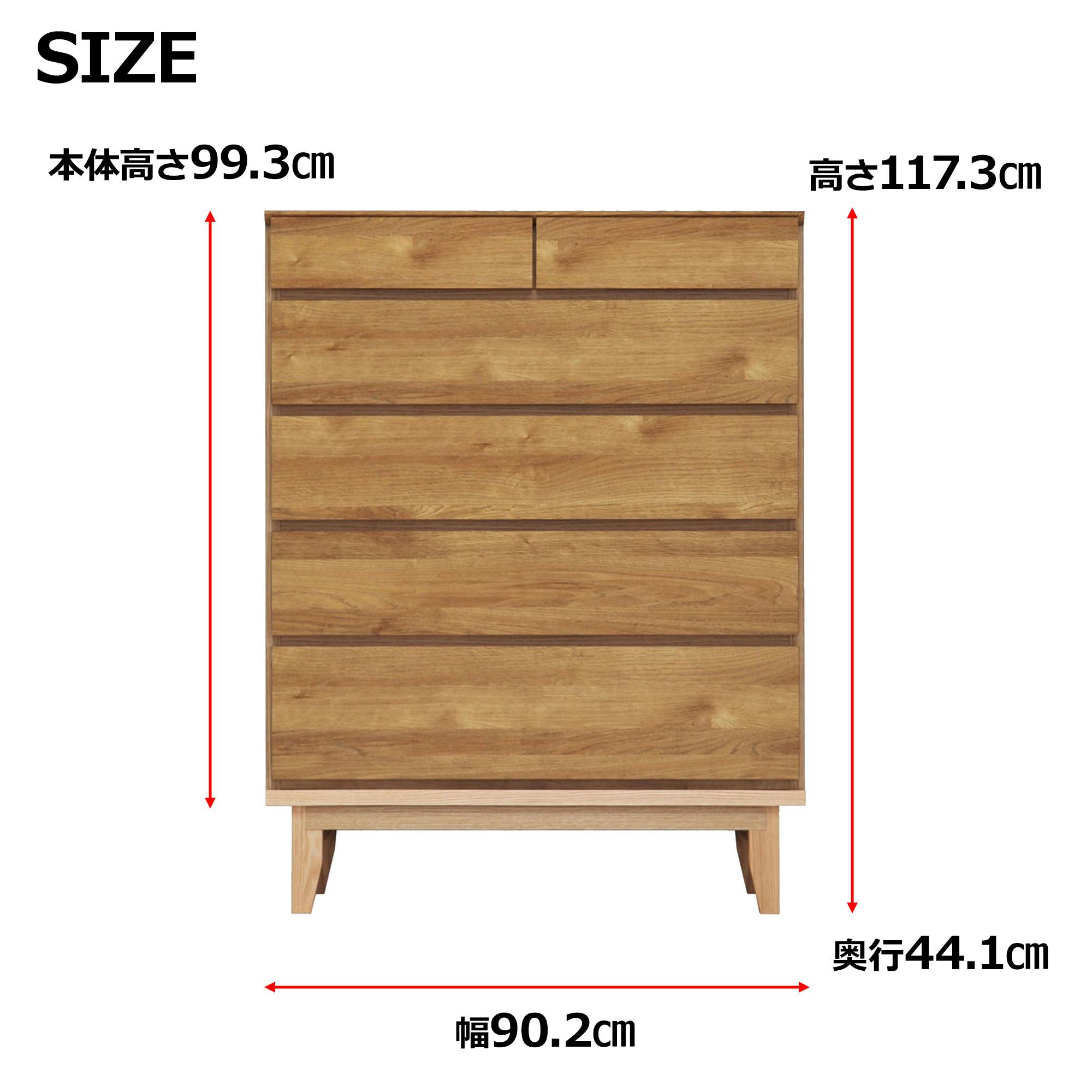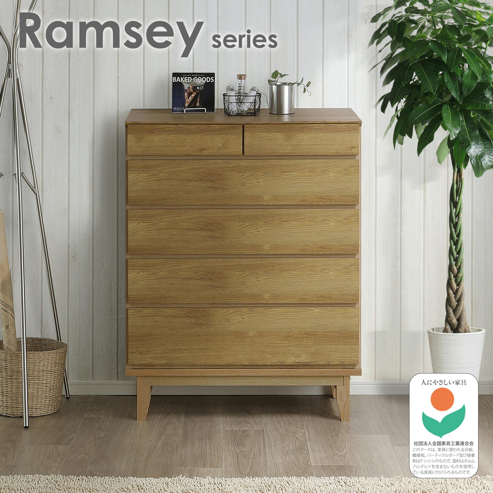 oka ハイチェスト ラムジー 幅90cm 5段 オーク タンス 収納家具 リビング収納 446423【別送品】