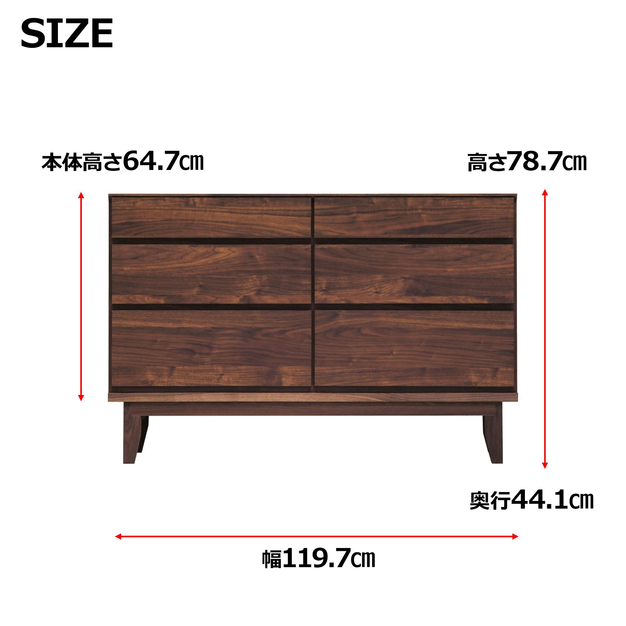 oka ローチェスト ラムジー 幅120cm 3段 ウォールナット タンス 収納家具 リビング収納 446426【別送品】