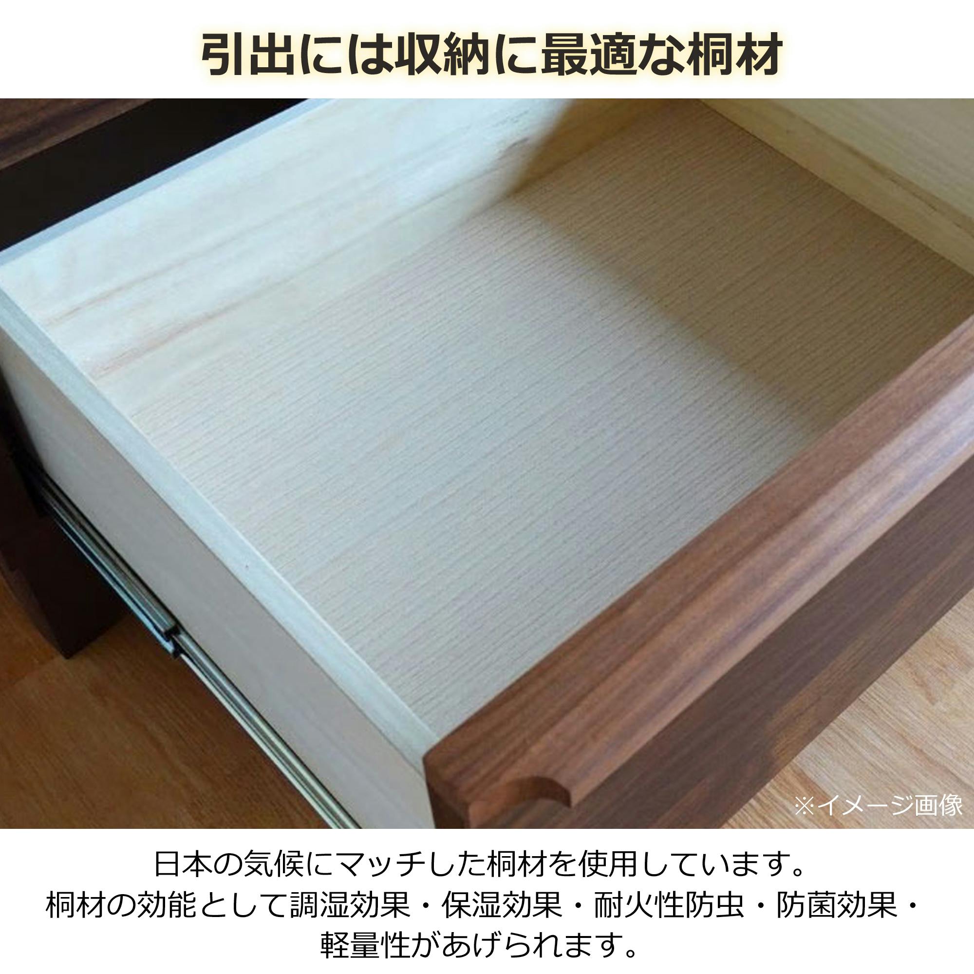 天板の周囲に囲いがあるため、置物が落ちにくい作りとなっております。取手は形にこだわり、また無垢材を採用しております。