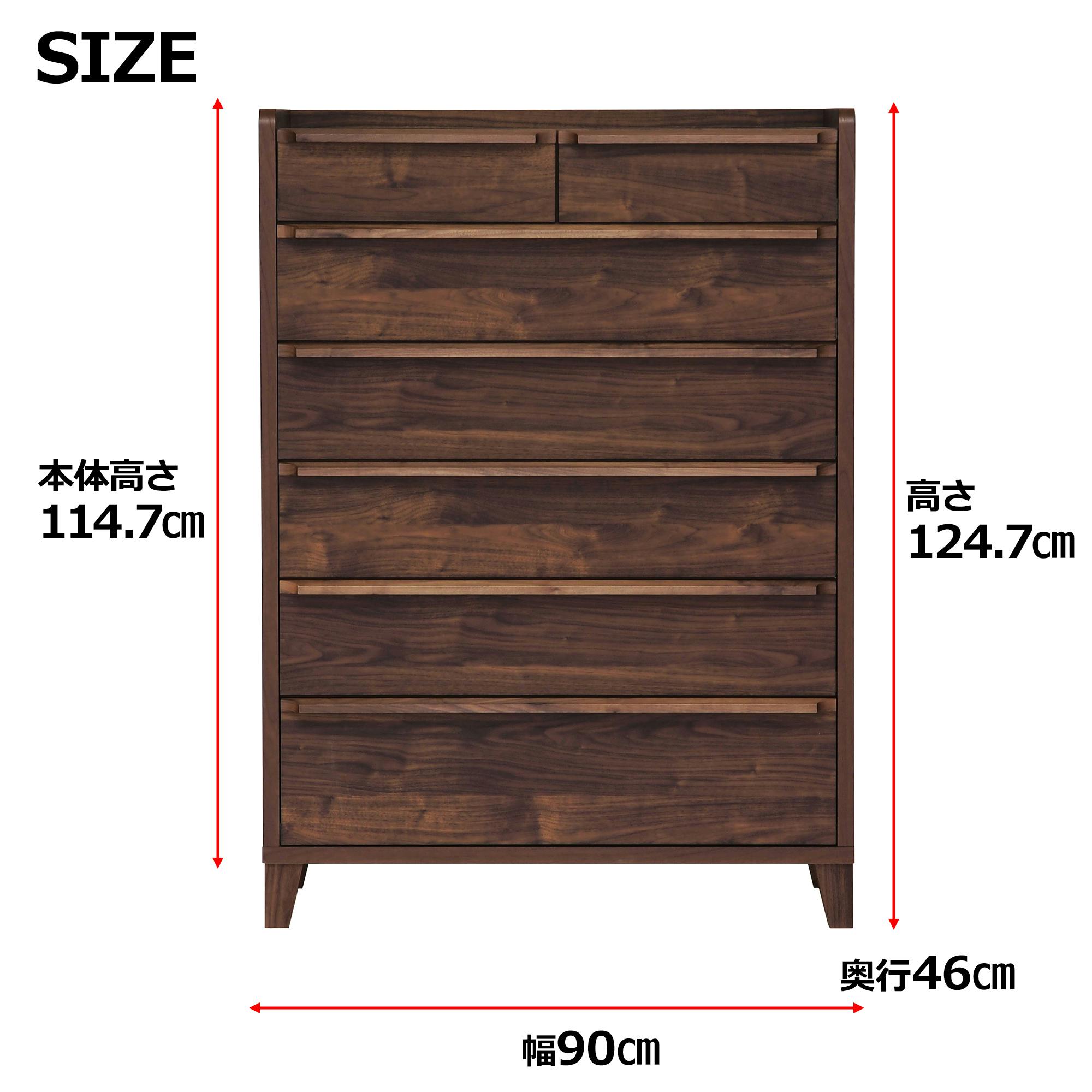 oka ハイチェスト レガシー 幅90cm 6段 ウォールナット タンス 収納家具 リビング収納 446448【別送品】