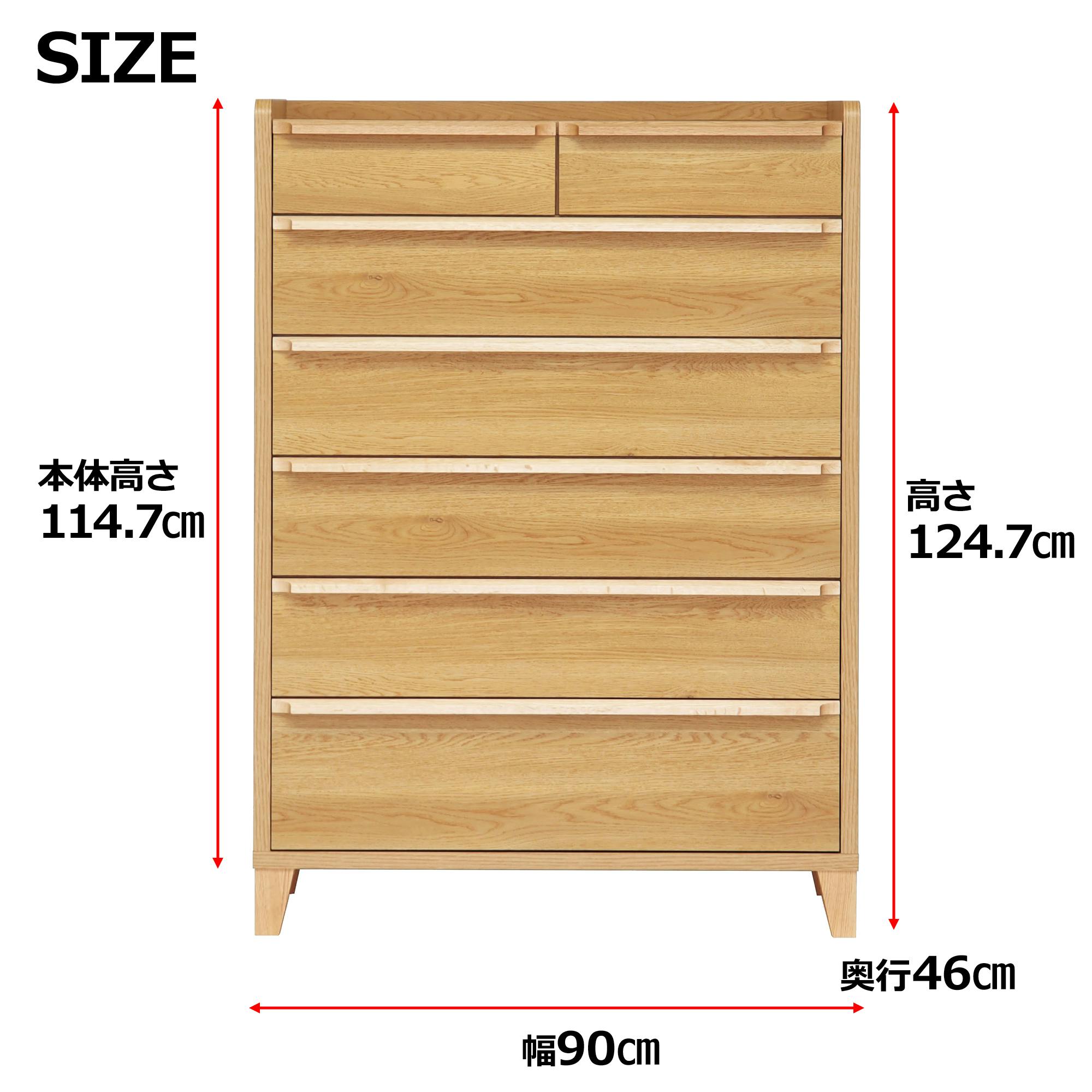 oka ハイチェスト レガシー 幅90cm 6段 オーク タンス 収納家具 リビング収納 446449【別送品】