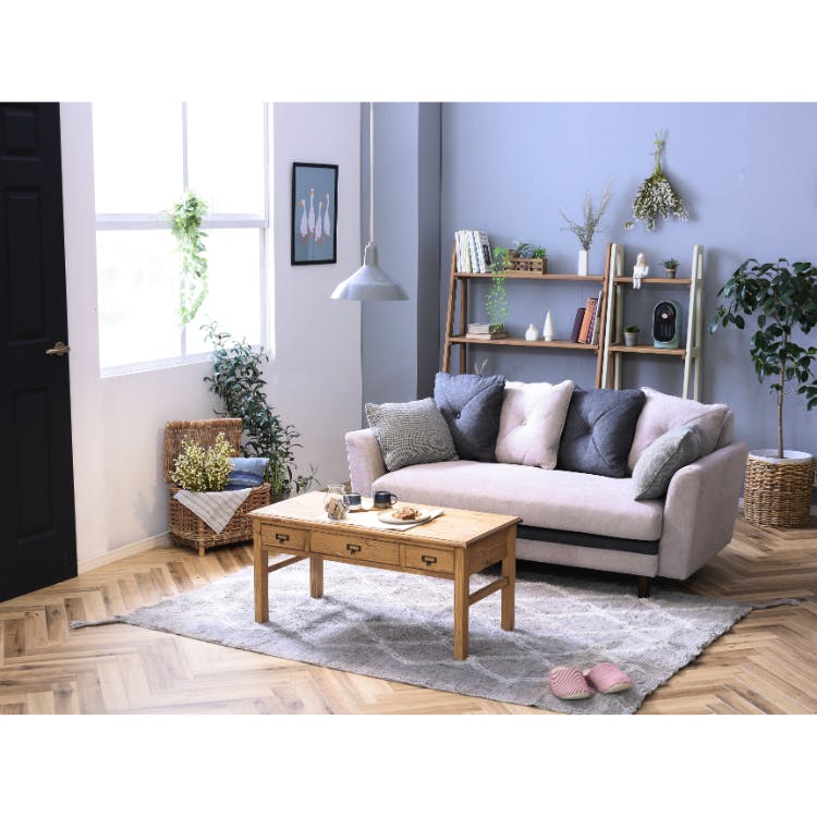コンパクトだけど奥行きが広めでゆったり座れるソファです。アクセントカラーでお部屋を明るく彩ってくれるアイテムです。