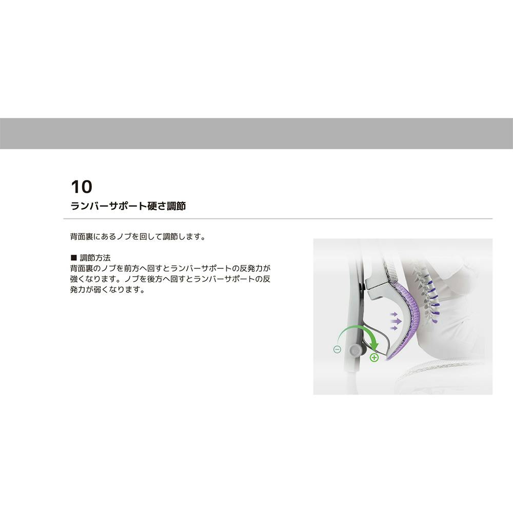 最大の特徴である「 独立式ランバーサポート 」は、ユーザーの体格・姿勢に応じて自動でポジションが調節され、着座時は常に腰をサポートし快適な座りを維持できるように開発されています。Ergohumanは2005年の発売開始以来、お客様からのお声を元に操作性・組み立てやすさ・耐久性など、より永く快適で安全にご使用いただけるように材料や構造などの改善を常に実践しています。