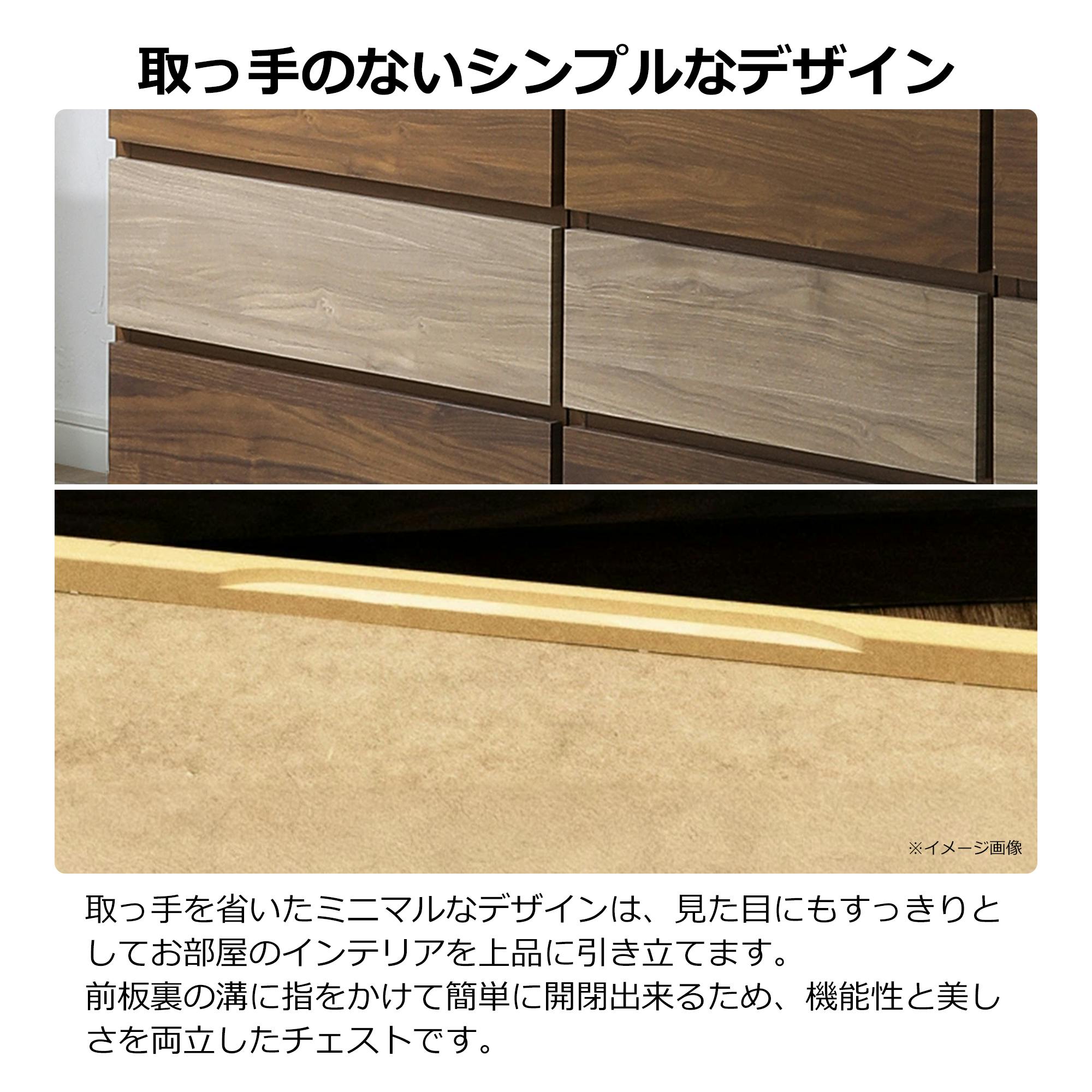 前板裏の溝に指をかけて開閉します。引き出しは全段スライドレールを採用。スライドレールはストッパー付き。