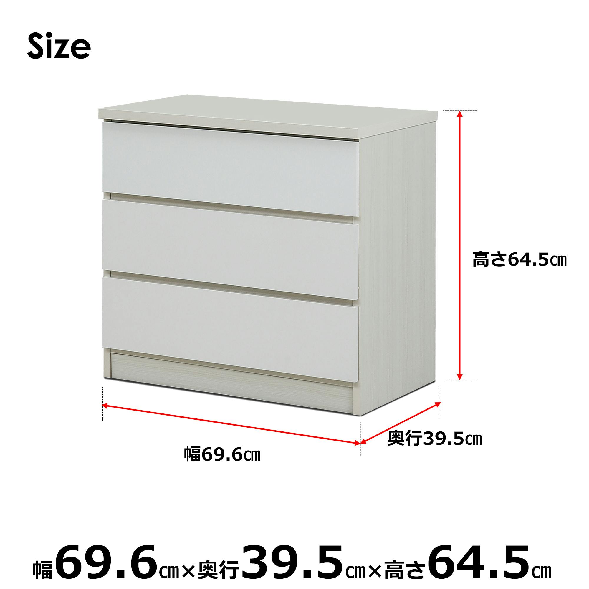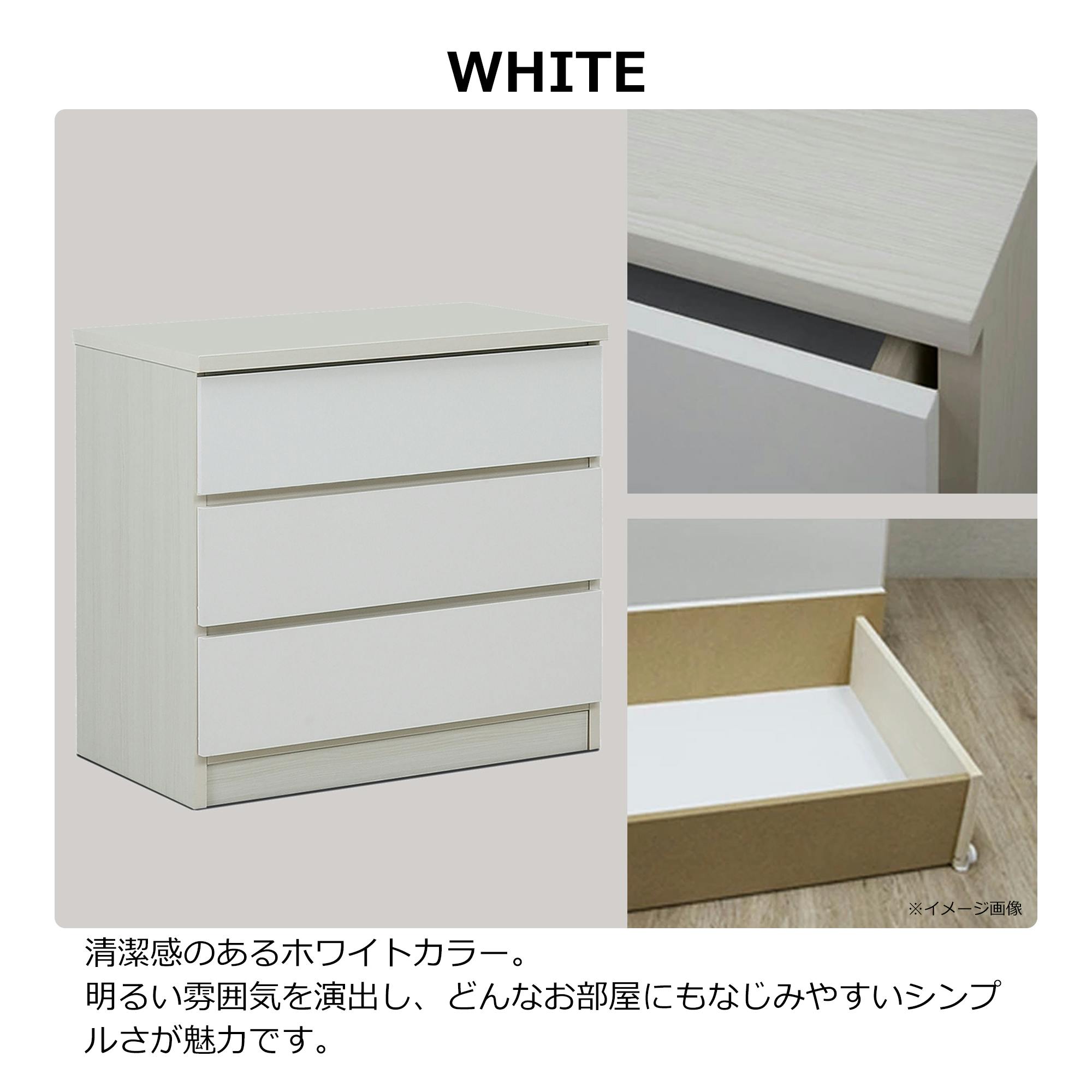 nakakei チェスト ワルツ 幅70cm 3段 ホワイト 洋服タンス シンプル 収納 464276【別送品】