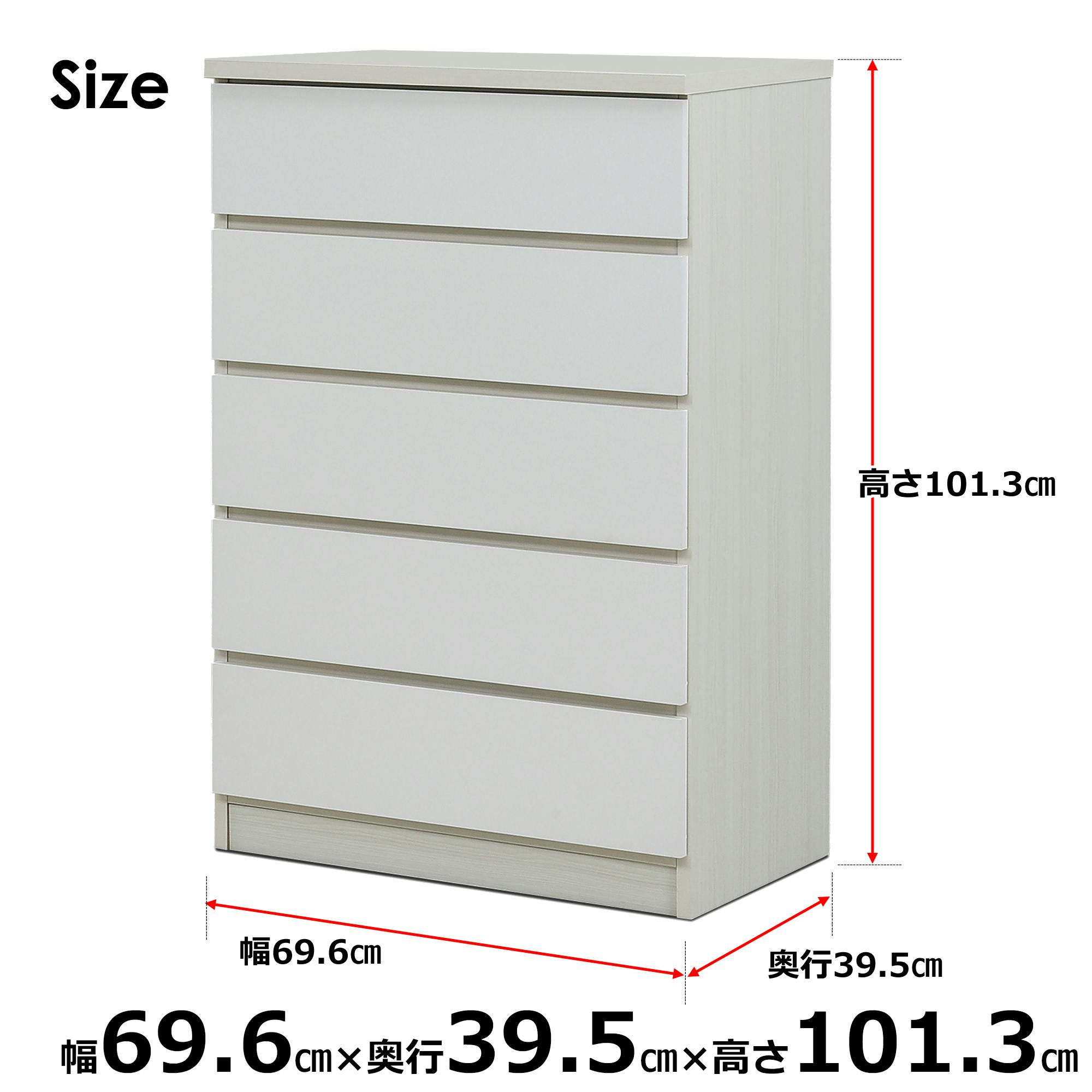 nakakei チェスト ワルツ 幅70cm 5段 ホワイト 洋服タンス シンプル 収納 464280【別送品】