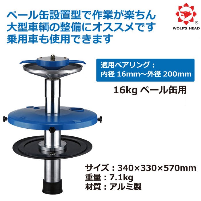 大型車両の整備にもおすすめです乗用車にも使用できます●16kgペール缶用◆適用ベアリング:内径16mm~外径200mm