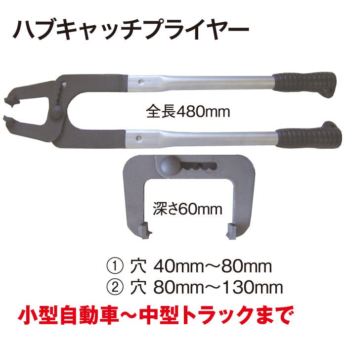 ハブキャッチプライヤー◆深さ:60mmくわえ幅(1)穴:40~80mm(2)穴:80~130mm