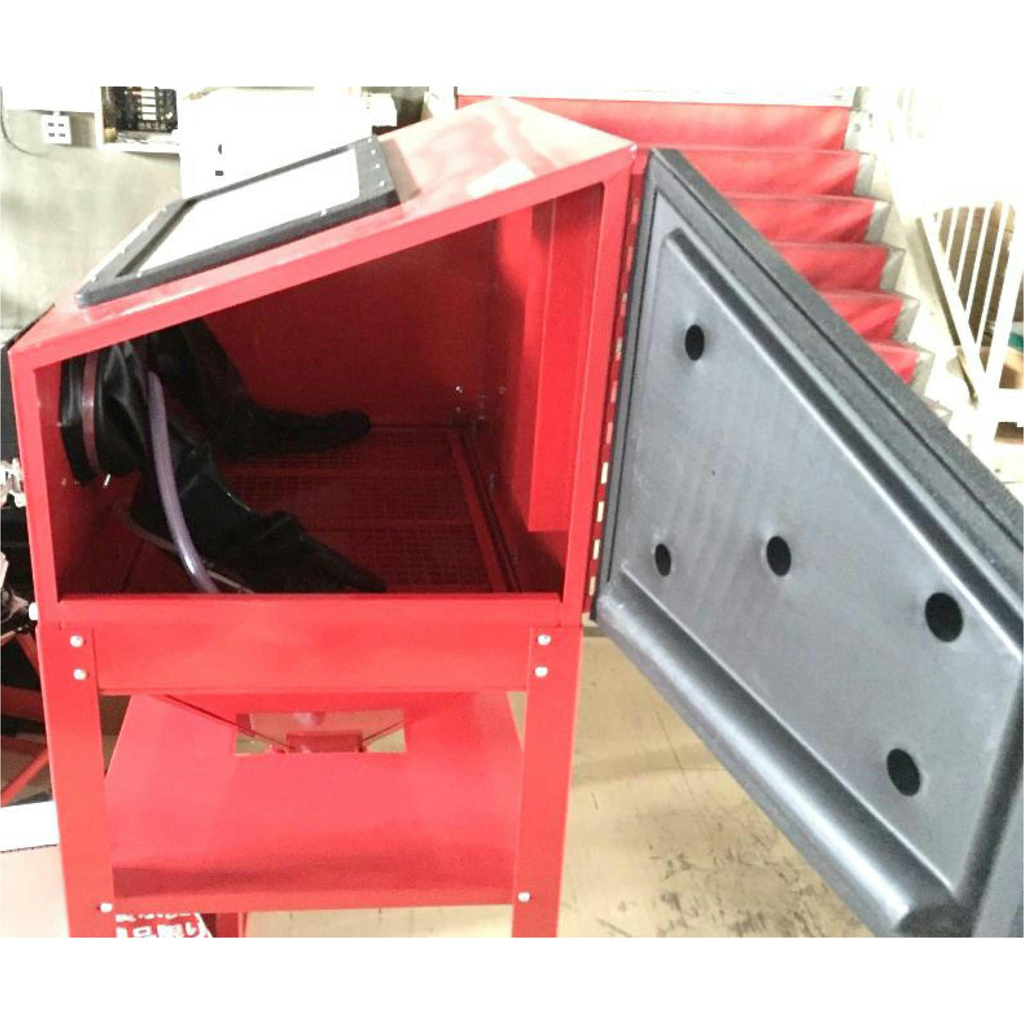 ◆エアー式◆組立式◆容量:220L【仕様】扉サイズ:幅515×前部高さ240×後部高さ425mm(右開きタイプ)入力:コンプレッサーエアー使用空気圧:0.6~0.8 MPa蛍光灯:AC100V(50/60Hz)標準サンド使用量:4~6kgコード:1.5m【付属品】◯ノズル(4、5、6、7mm各1個)◯スペア保護フィルム5枚◯シールテープ◯サンドブラストガン ◯グローブ