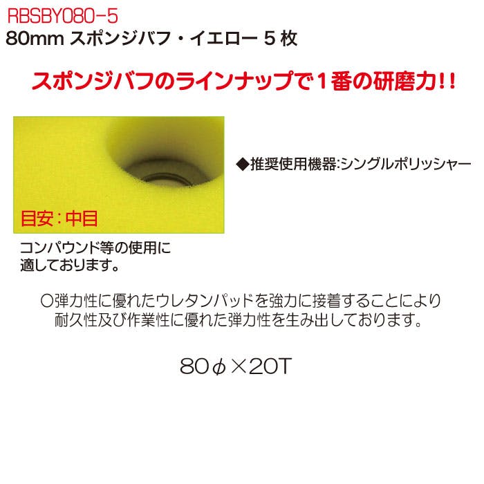 レックス 80mm スポンジバフ・イエロー 5枚 RBSBY080-5 自動車整備 ポリッシャー バフ 磨き ワックス CZ02953【別送品】