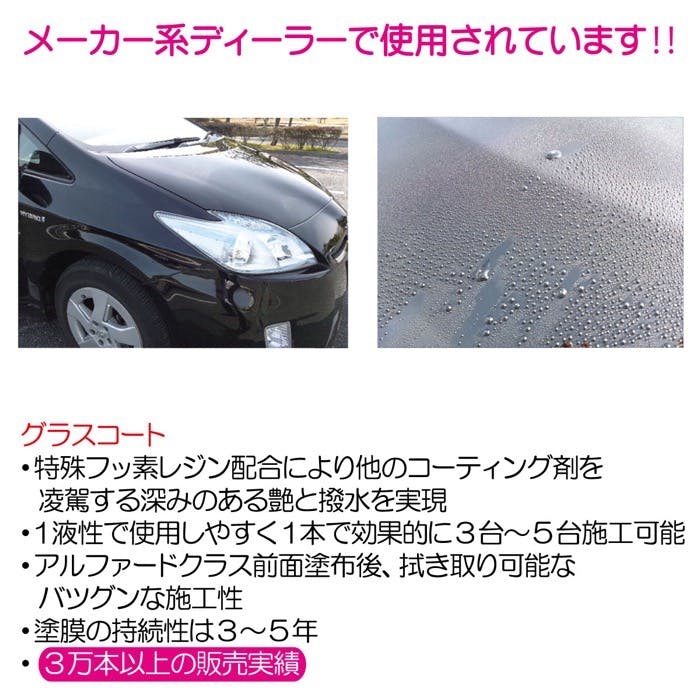 ・1液性で使用しやすく1本で効果的に3台~5台施工可能・アルファードクラス前面塗布後、拭き取り可能なバツグンな施工性・塗膜の持続性は3~5年・3万本以上の販売実績内容量:100ml※ラベルが変わる場合がございます。