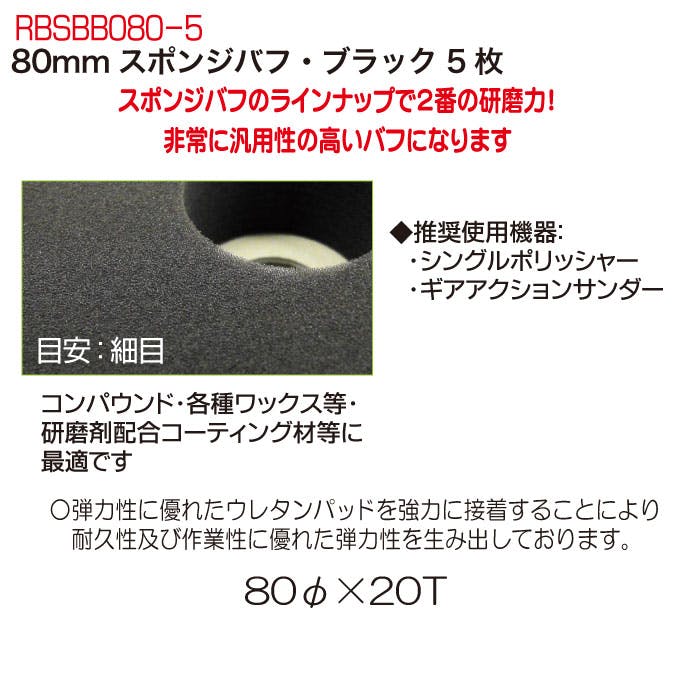 レックス 80mm スポンジバフ・ブラック 5枚 RBSBB080-5 自動車整備 ポリッシャー バフ 磨き ワックス CZ03006【別送品】