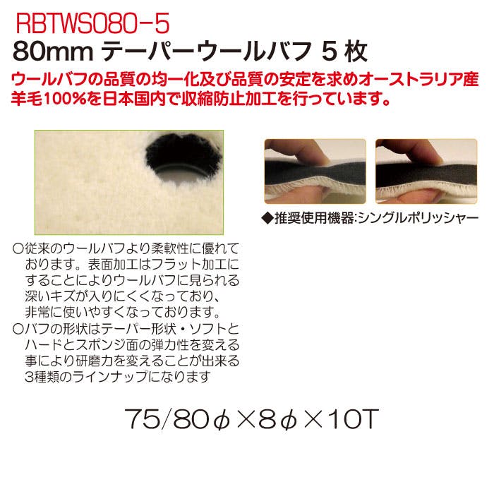 レックス 80mm テーパーウールバフ5枚 RBTWS080-5 自動車整備 ポリッシャー バフ 磨き ワックス CZ03037【別送品】