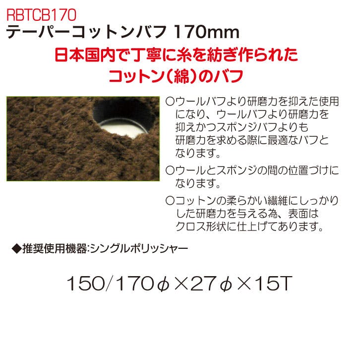 レックス テーパーコットンバフ170mm RBTCB170 自動車整備 ポリッシャー バフ 磨き ワックス CZ03066【別送品】