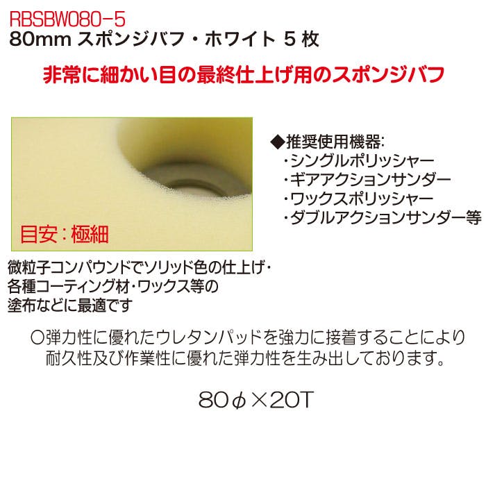 レックス 80mm スポンジバフ・ホワイト 5枚 RBSBW080-5 自動車整備 ポリッシャー バフ 磨き ワックス CZ03198【別送品】