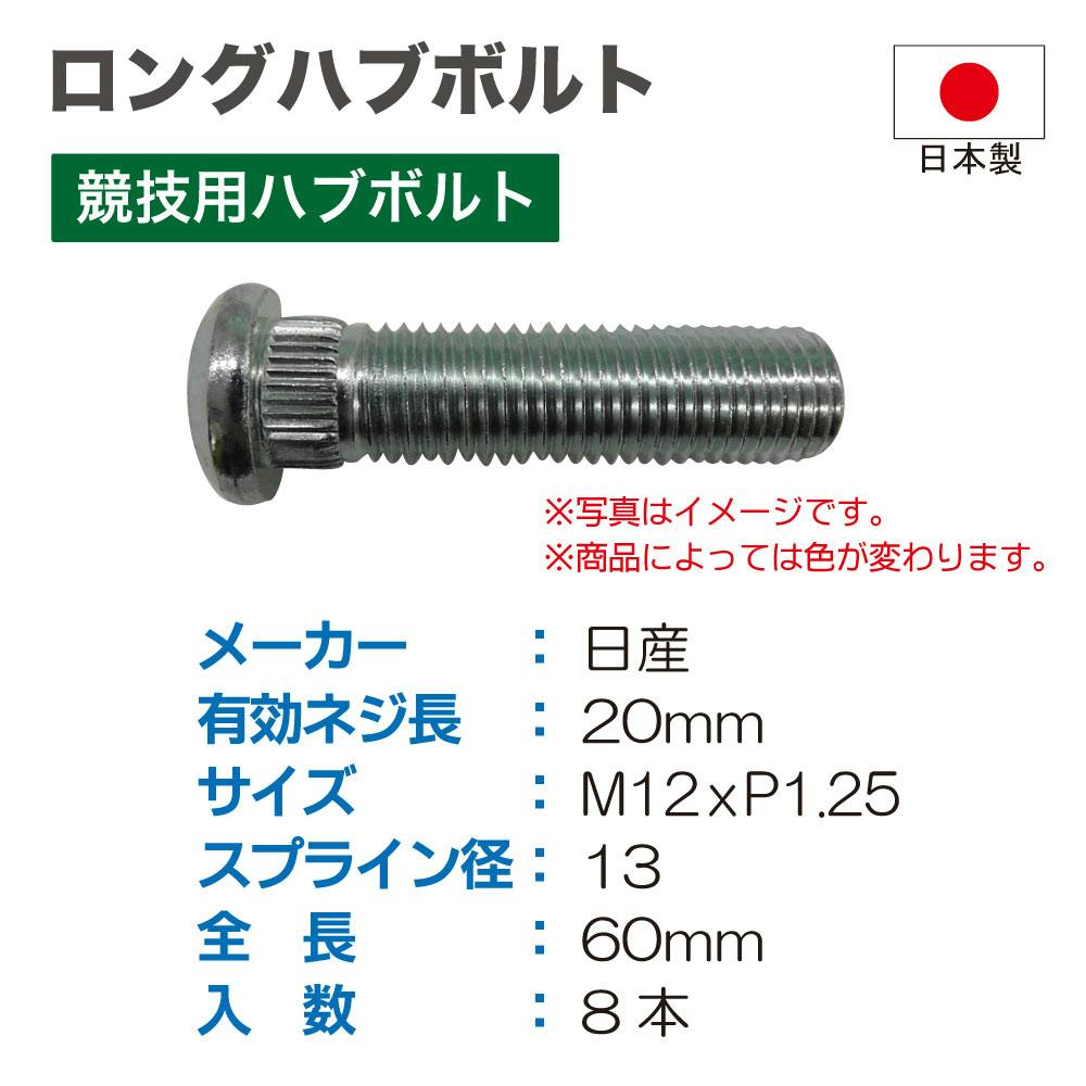 メーカー:日産有効ネジ長:20mmサイズ:M12xP1.25スプライン径:13全長:60mm入数:8本