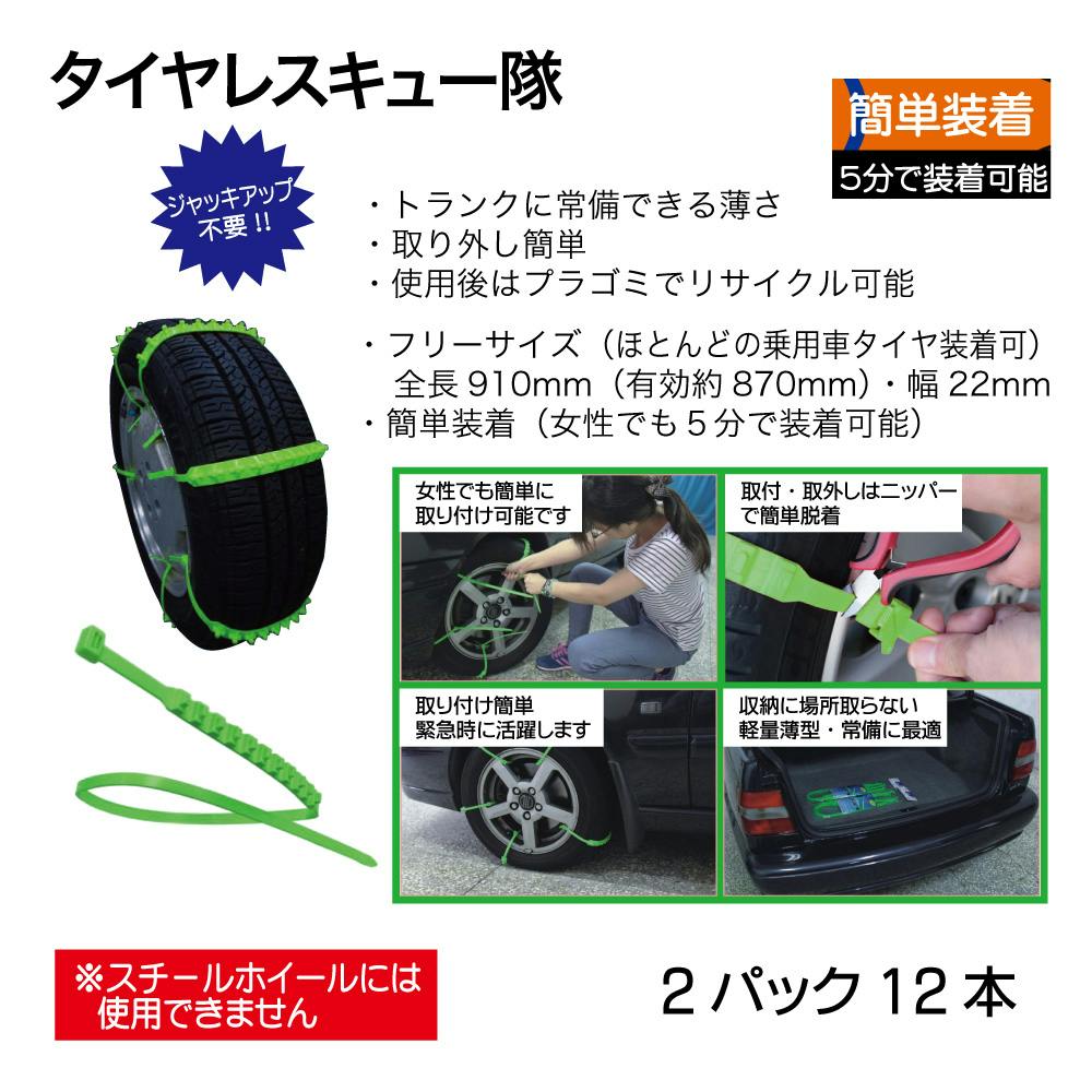 ・トランクに常備できる薄さ・取り外し簡単・フリーサイズ(ほとんどの乗用車タイヤ装着可) 全長910mm(有効約870mm)・幅22mm入数:2パック12本