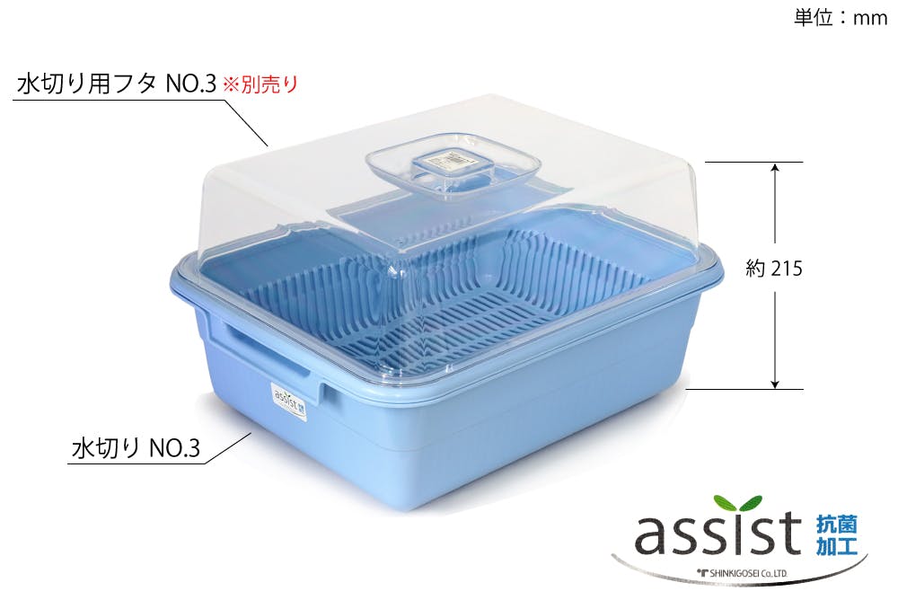 水切りカゴ No.3 370×285×130H ブルー 抗菌 日本製 防カビ加工 101-1150501【別送品】