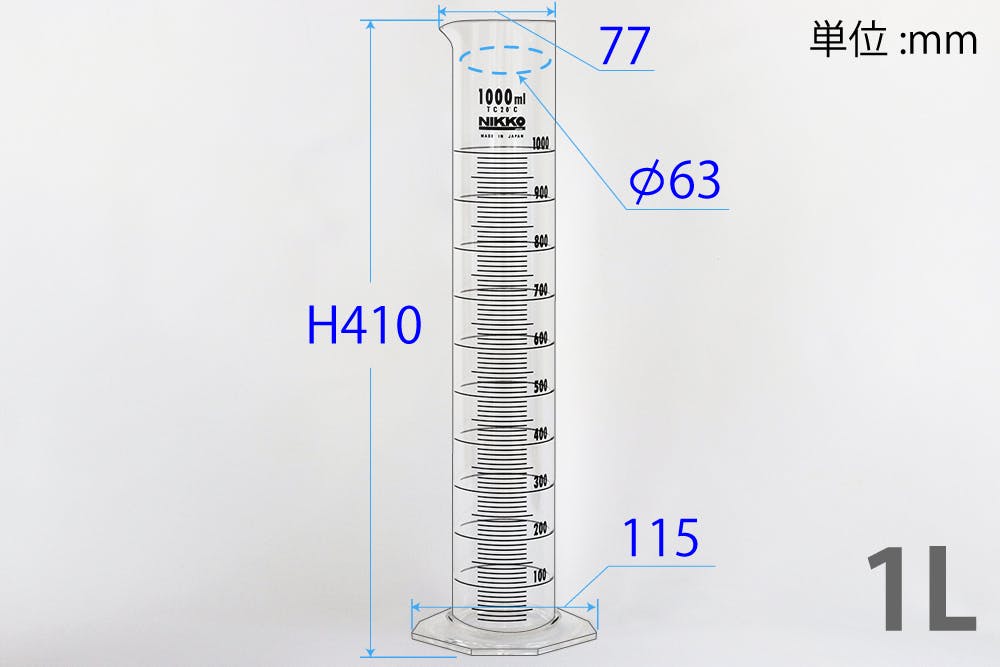 ケミカルメスシリンダー 1L アクリル樹脂 透明 耐衝撃性 101-24309【別送品】