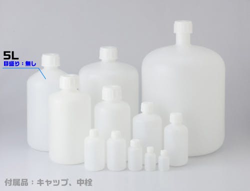 PE細口瓶 白 5L ポリエチレン 分配 蓋付 101-5821002【別送品】