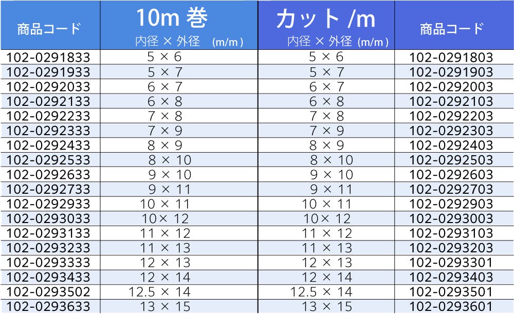 ●サイズ(mm):内径7×外径9●使用可能温度範囲(℃):-40~+260●定尺(m):10