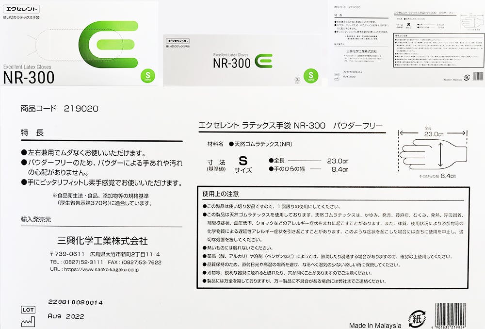 エクセレント ラテックス手袋 NR-300PF Sサイズ(100枚入) 230mm パウダーフリー 左右兼用 104-80702【別送品】