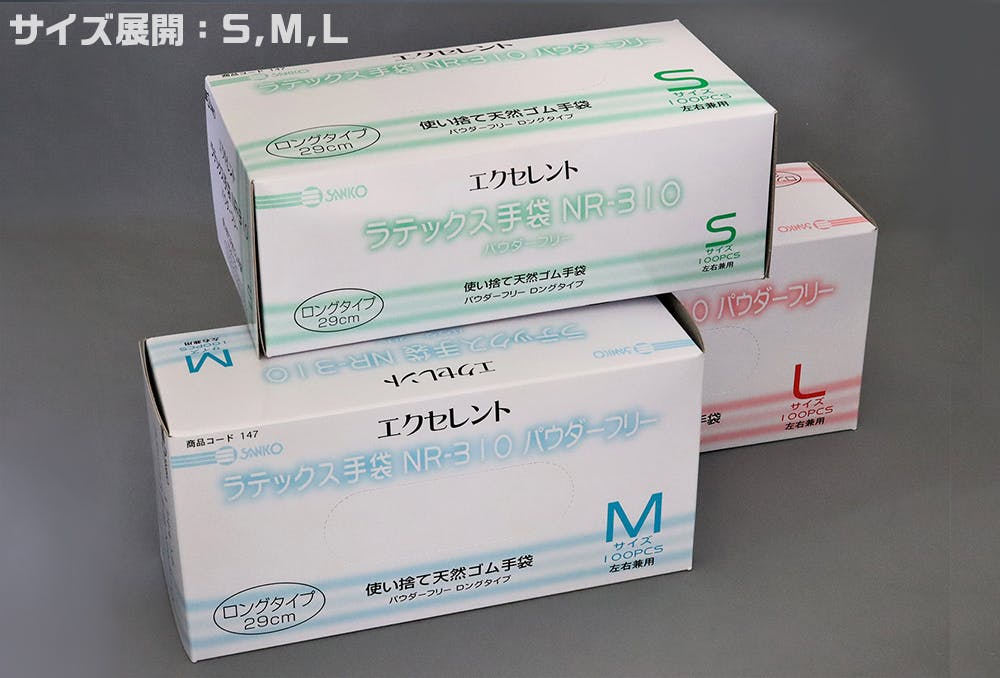 エクセレントラテックス手袋 NR-310PF Lサイズ 100枚入 ロング パウダーフリー 天然ゴム製 104-90103【別送品】