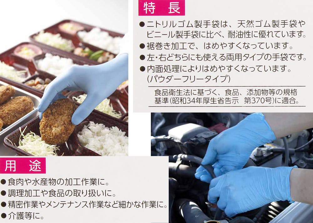 ●品番:No.886●材質:ニトリルゴム●サイズ:S●本体カラー:ブルー●全長 (mm):240●掌周り(mm):170●厚さ(mm):約0.13●入数:100枚
