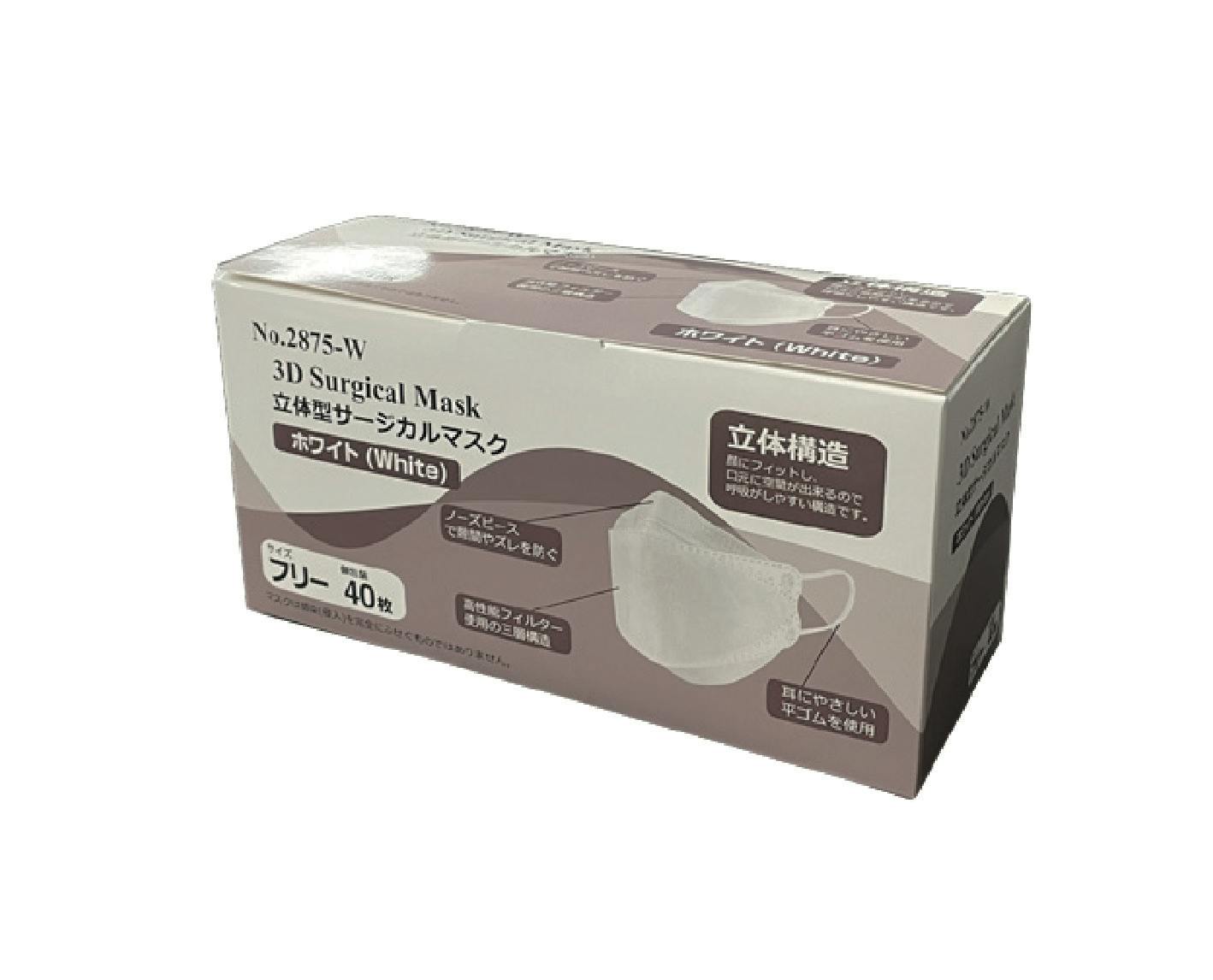 立体型サージカルマスク No.2875-W 40枚入 カラー:ホワイト サイズ:フリー 医療用 立体構造 高性能フィルター使用 304-0020241【別送品】