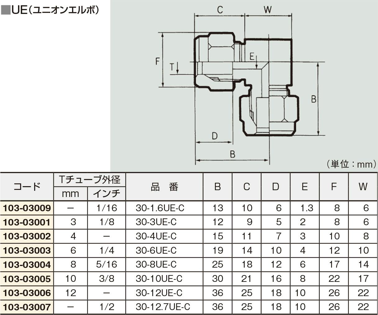 チューブフィッティング 30-8UE-C 103-03004【別送品】