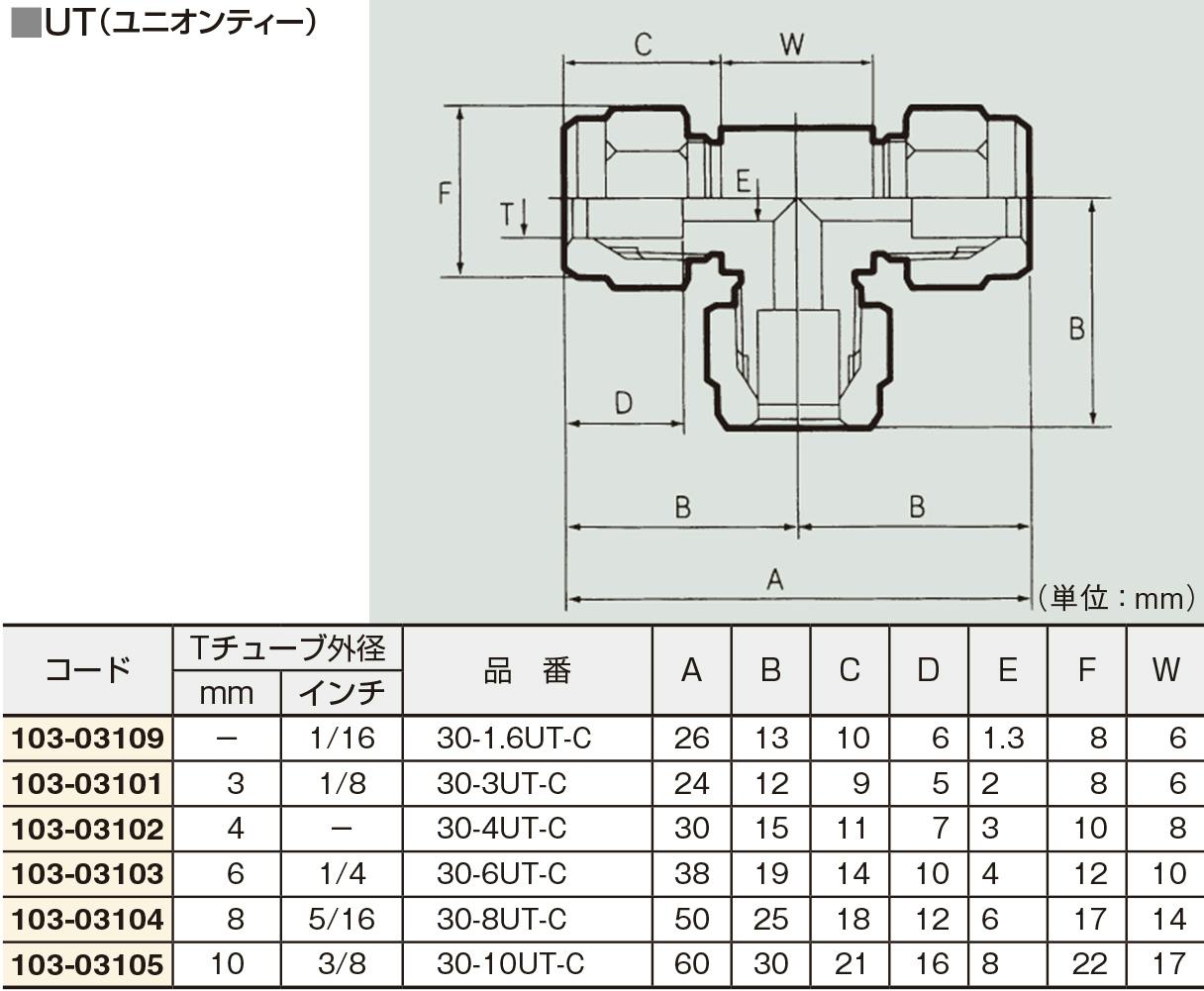 チューブフィッティング 30-4UT-C 103-03102【別送品】