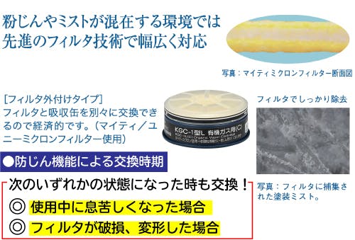 ●吸収缶:KGC-1型Lシリーズ●適応ガス:有機ガス用マイティミクロンフィルター付●記号:C●入数:1個【使用可能面体】●R-5●R-5X●RR-7●DD-3●1621G,1551G