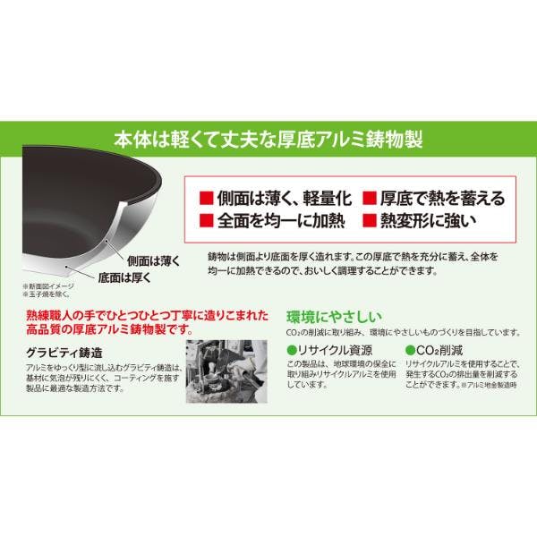 熟練職人がひとつずつ手作業で造りあげたアルミニウム鋳物製フライパン 外面がショットピーニング加工で傷つきにくい 内面はシルクウェアEZでお手入れ簡単 対応熱源:ガス火用 ※電磁調理器 (IH)ではご使用できません
