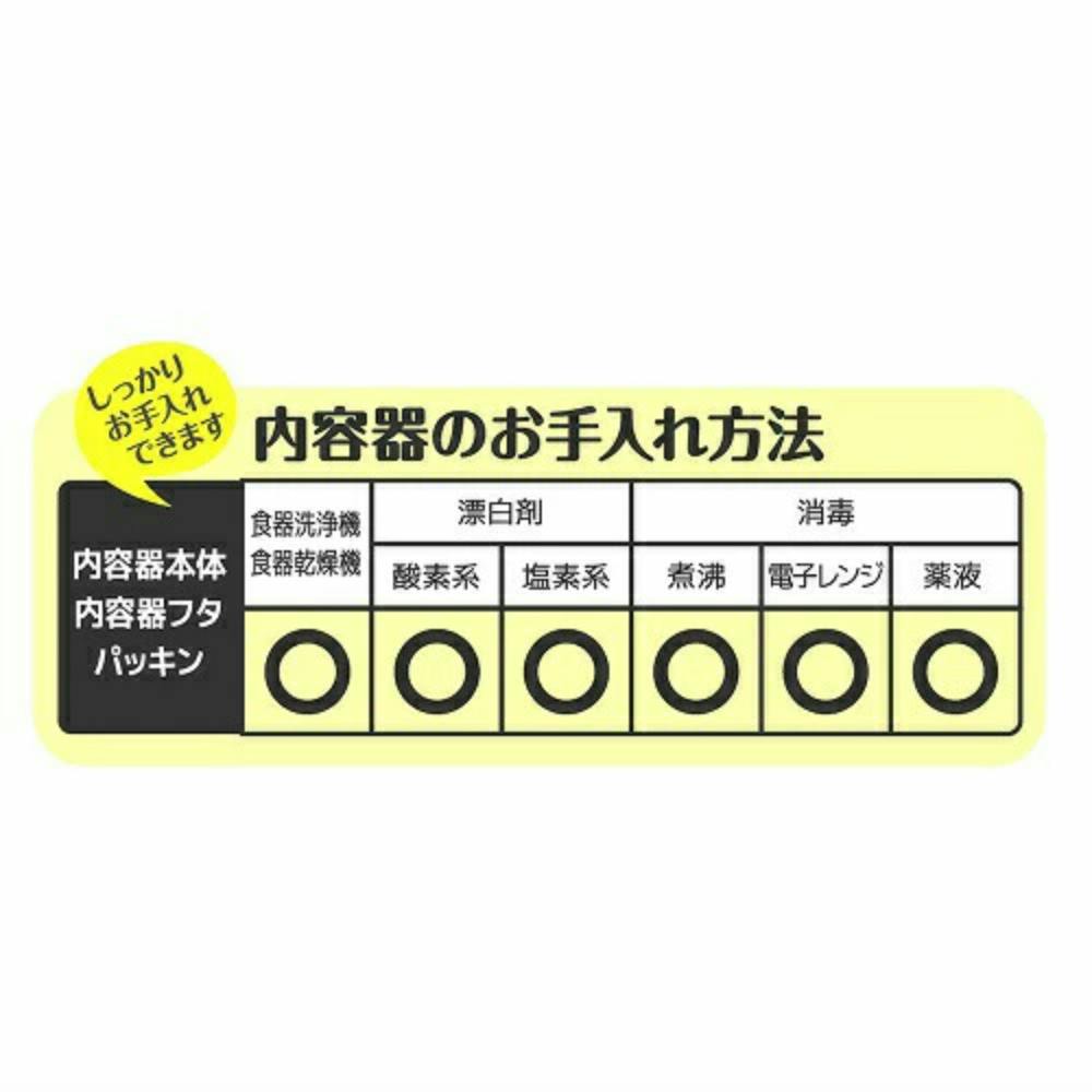 [内容器]内容器本体(大・小):ポリプロピレン / 内容器フタ:ポリプロピレン / パッキン:シリコーン [外容器]外容器本体:ステンレス鋼(アクリル樹脂塗装) / 外容器フタ:ポリプロピレン中国