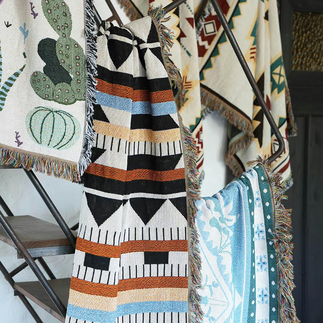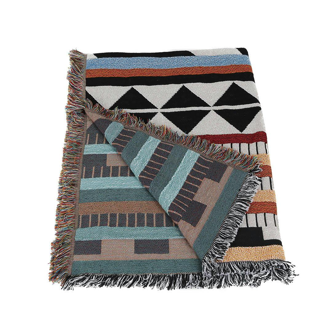 リバーシブルで色の違いが楽しめるジャガード織りのマルチクロス。薄手のつくりになっているので、オールシーズン自由自在に活躍してくれます。アウトドアではレジャーシート代わりや羽織として使ったり、ソファカバーやベッドの上にかぶせてアクセントにしたり。