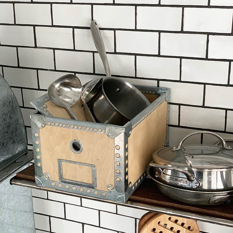 ナチュラルな木のボディに、インダストリアル感漂うスチールのフレームを合わせた収納ボックス。リビングやクローゼットをはじめ幅広いシーンで活躍。