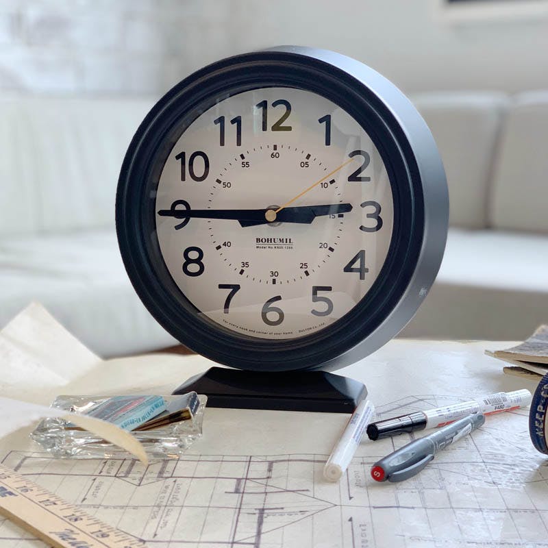 今の時代、スマホがあれば時間を見るには十分かもしれませんが、それでも部屋の中には、絶対時計を置いておきたい。 インテリアとしても欠かせない存在のひとつであると思います。 賃貸で壁掛けが出来ない、インテリアと一緒に棚に並べて置きたい、そんな時にぴったりな置き時計です。 またスイープムーブメントなので、寝室などにも向いています。