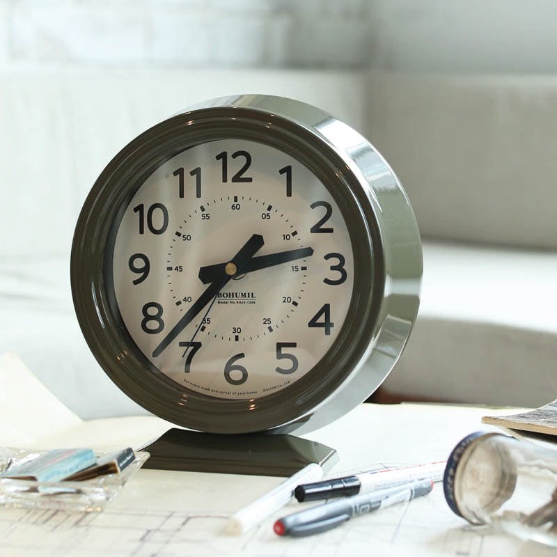 今の時代、スマホがあれば時間を見るには十分かもしれませんが、それでも部屋の中には、絶対時計を置いておきたい。 インテリアとしても欠かせない存在のひとつであると思います。 賃貸で壁掛けが出来ない、インテリアと一緒に棚に並べて置きたい、そんな時にぴったりな置き時計です。 またスイープムーブメントなので、寝室などにも向いています。